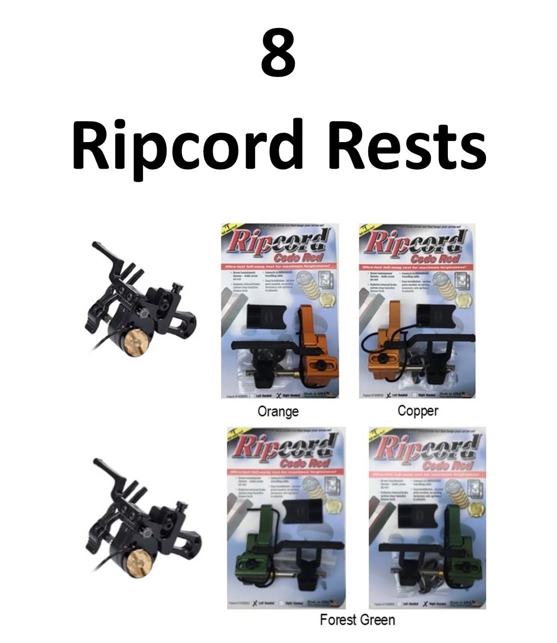 6 x Ripcord Rests, 1-Copper RH, 1-Copper LH, 1-Forest Green LH, 1-Forest Green RH, 2-ACE Micro Adj Lost Camo RH