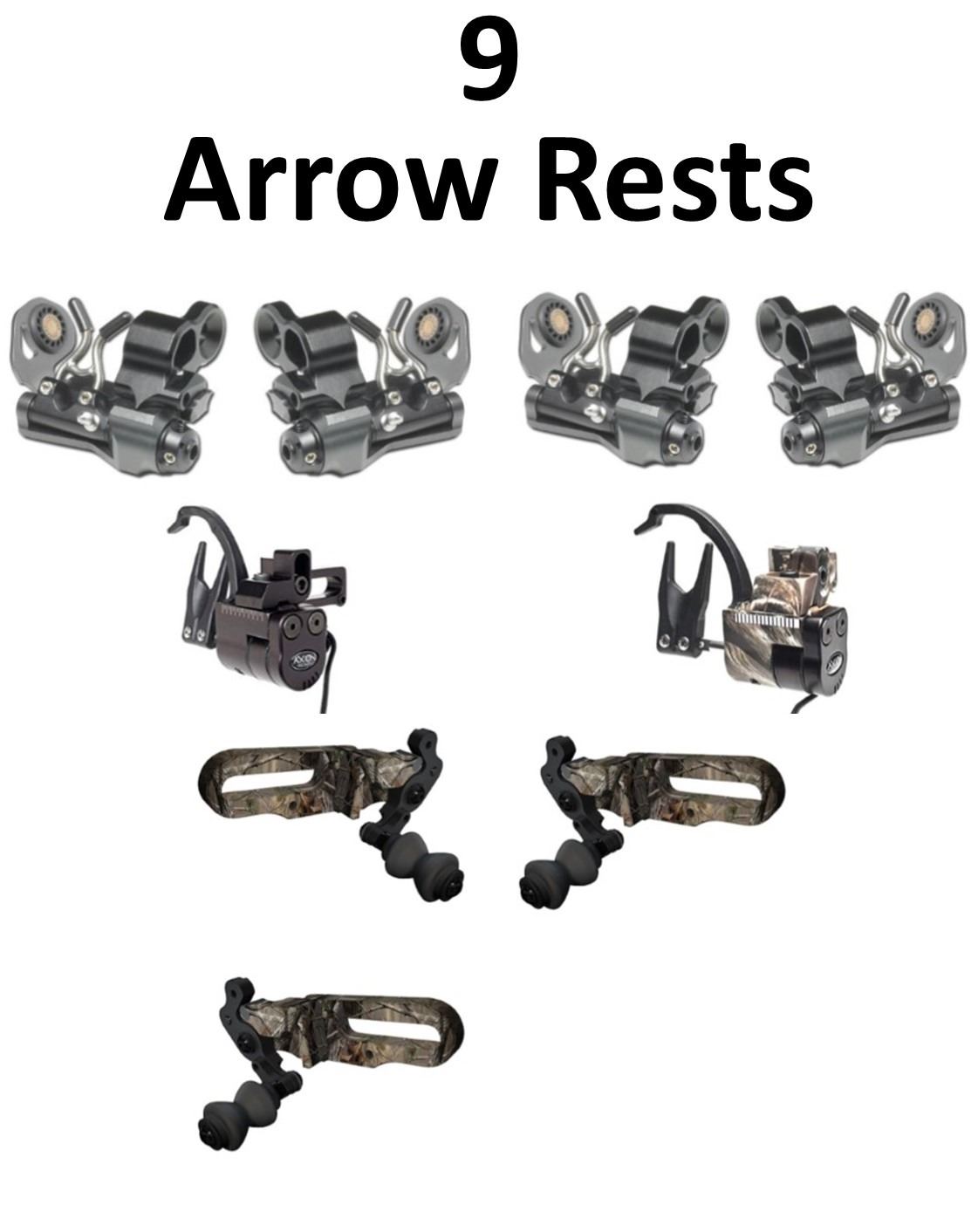 9 x Rests, 4 x Mathews Downforce Rest, 2-Black RH, 2-Black LH, 1 x Axion Pulse Lost Camo RH, 3 x G5, 2-Expert I Drop Away AP LH, 1-Expert II AP RH, 1 x Axion Pulse Black RH
