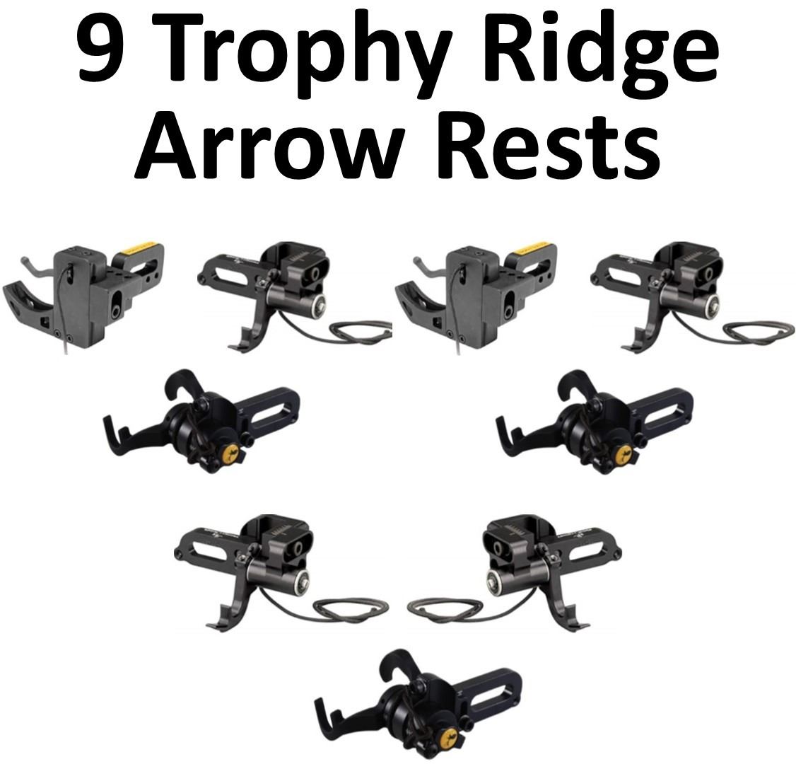 9 x Trophy Ridge Rests, 2-Drop Zone RH, 3-Drop Shot RH, 1-Drop Shot LH, 3-Revolution Fall Away RH