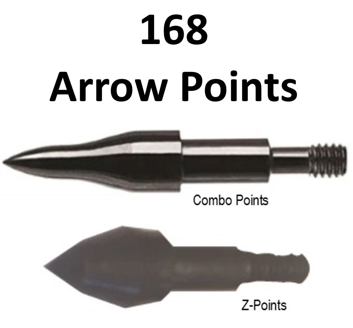 14 Doz. Arrow Points, 6 Saunders 19/64 Combo Points, 1-75 Gr, 4-100 Gr,1-125 Gr, 1 Saunders 18/64 Combo Points 85 Gr, 7 Bohning Z-Points 85 Gr
