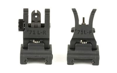 The new A.R.M.S. (R) #71L series of Front and Rear Sights with STEEL APERTURES! Both are made from durable" metal-reinforced polymer and are a good option when seeking a quality sight. The apertures on the rear sight are real steel and not subject to distortion like thin plastic types. Both are .600" when in the folded position" from the top of the receiver.