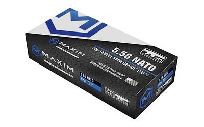 Maxim Defense Industries, SBA Short Barrel Ammunition, 556NATO, 62 Grain, Solid Copper Bullet, TUI (Tumble Upon Impact) Design, 20 Round Box