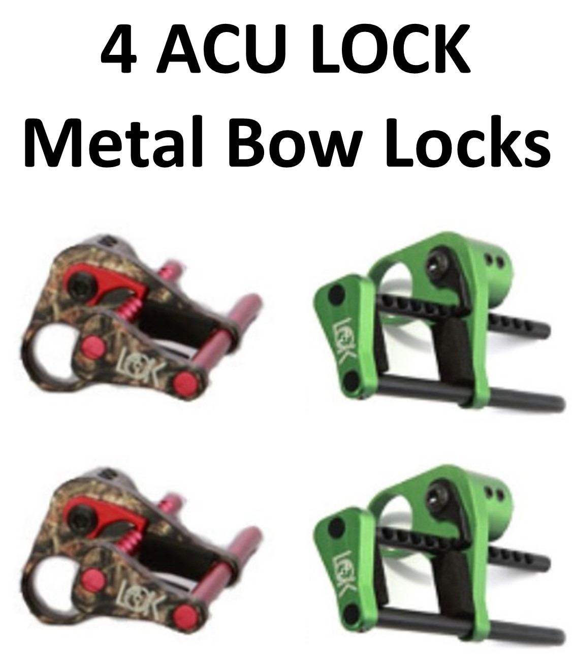 4 x ACU LOCK Metal Bow Locks, 2-Lost Camo, 2-Green
