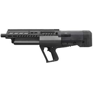 The Tavor TS12 12 gauge shotgun is a gas regulated bullpup shotgun with an innovative design that feeds from one of three (3) individual magazines which can hold four 3 inch shotgun shells or five 2 ¾ inch shotgun shells each. This means that the potential overall capacity from all three (3) individual magazines is 15 rounds plus one additional round in the chamber. The TS12 has a unique feature that automatically loads a round in the chamber once the subsequent loaded magazine is rotated into position. It can be fed and unloaded from either side.