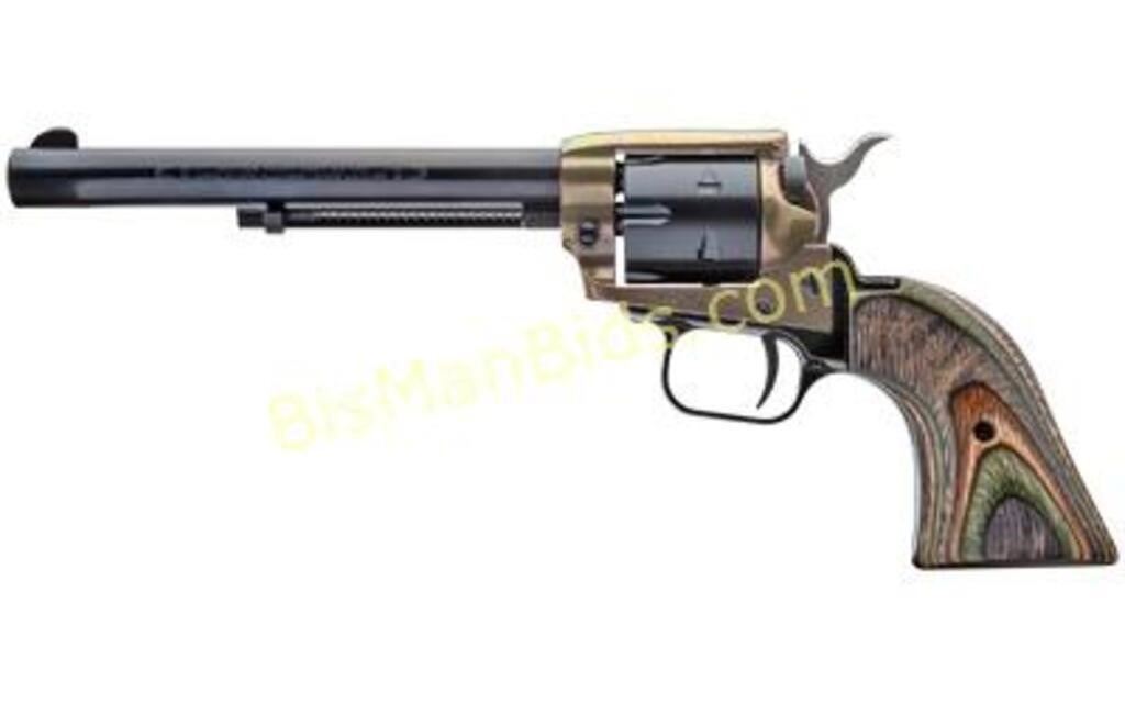 Heritage, Rough Rider, Single Action, Revolver, 22LR/22 WMR, 6.5" Barrel, Alloy, Simulated Case Hardened Finish, Black, Camo Laminate Grips, Fixed Sights, 6 Rounds
