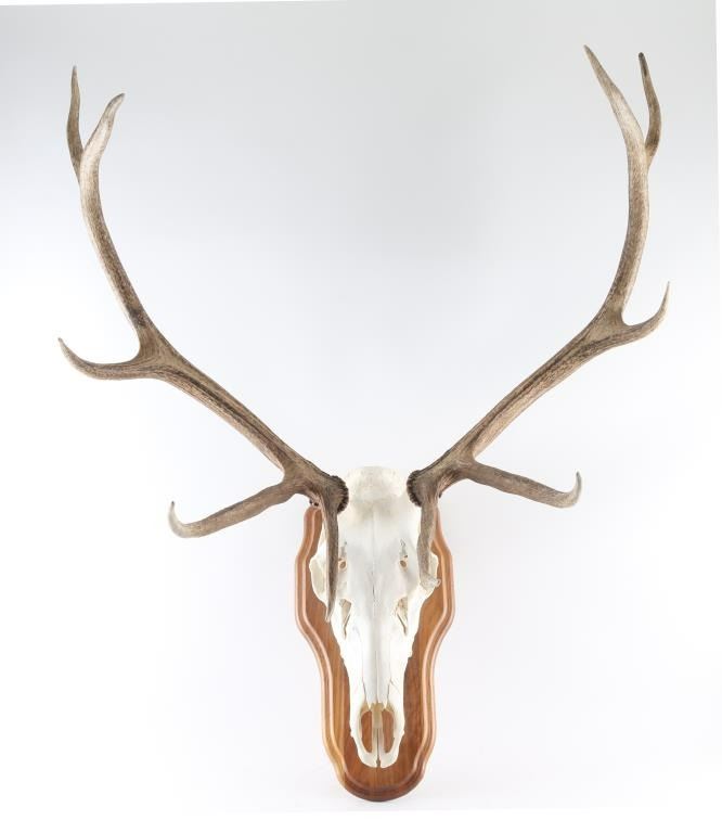 5 point European Elk, beautifully mounted on wood base, in good condition