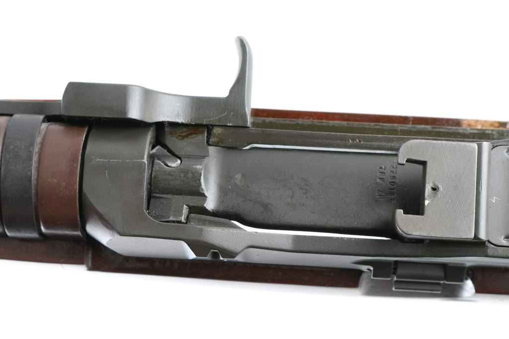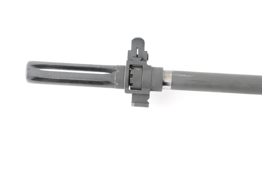 Semiautomatic rifle features parkerized finish, wood stock with butt trap, brown fiberglass handguard, 22" barrel, flash hider, "NM062"blade front sight with protective ears, "NM/2A adjustable rear peep sight. "NM 595" swivel peep sight, "NM BME" windage drum. "TRW ZH" bolt. Lug has been welded to the rear of receiver. Stripper clip guide installed. Armscorp markings on right receiver rail. Takes detachable magazines, manual safety. Buttplate has hinged cover over trap door. Bore is excellent. Parkerized finish is very good, with some minor rubs, Wood is very good except for some dings, dents on the grip. No magazine. NRA condition Very Good. Modern Firearm