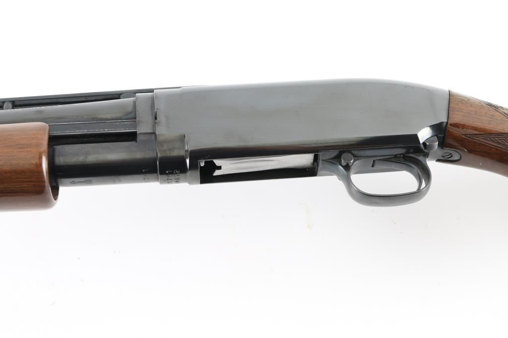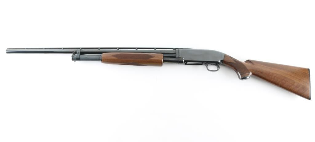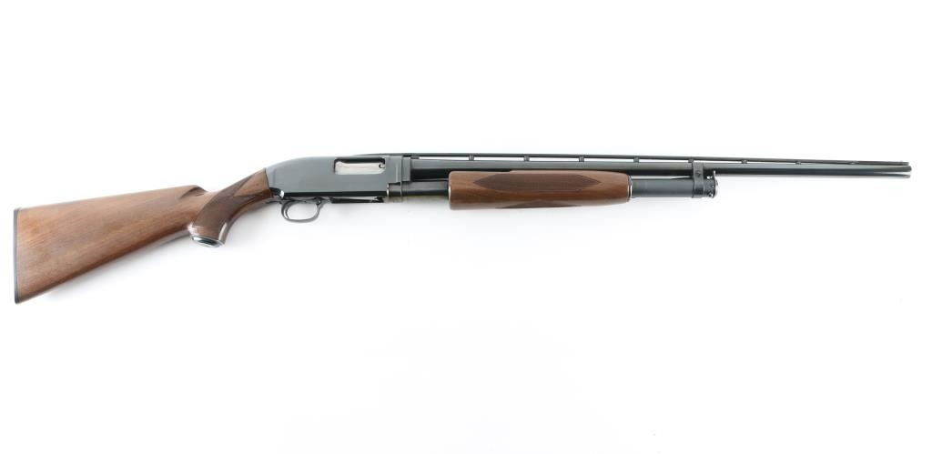Limited edition reproduction of the famous Winchester Model 12, chambered for 2 3/4" 28 gauge shells. Manufactured in Japan by Miroku circa 1990 with only 8,000 produced in total. Features a polished blued finish, 26" modified choked take-down barrel with high post floating sighting rib, silver bead front sight, brass mid bead, 5 round magazine tube, smooth trigger, push button safety, polished bolt, checkered walnut slide handle with satin finish and pistol grip shoulder stock with metal grip cap & factory butt plate LOP is 14.25". Bore is excellent/bright. Metal finish looks great with little signs of handling. Wood stocks look great with minor handling marks. Condition is NRA Excellent Modern Firearm