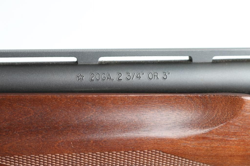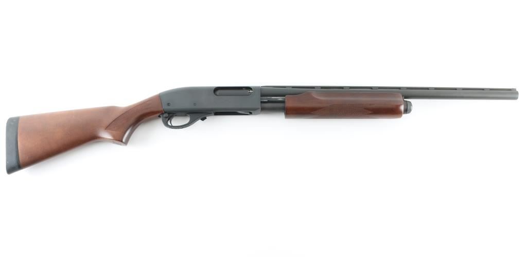 Pump action shotgun accepts 2-3/4" & 3" shells. Features 21" vent rib barrel, choke tubes (MOD installed), Steel bead front sight, manual safety, matte blued finish, low glare wood butt & forend, checkering panels at wrist and forend, solid rubber recoil pad. Bore is very good condition. Retains 95% finish with edge losses, scratches on rib, rubbing wear on action bars. Wood is very good with few small blemishes. Condition is near NRA Excellent *** Modern Firearm ***