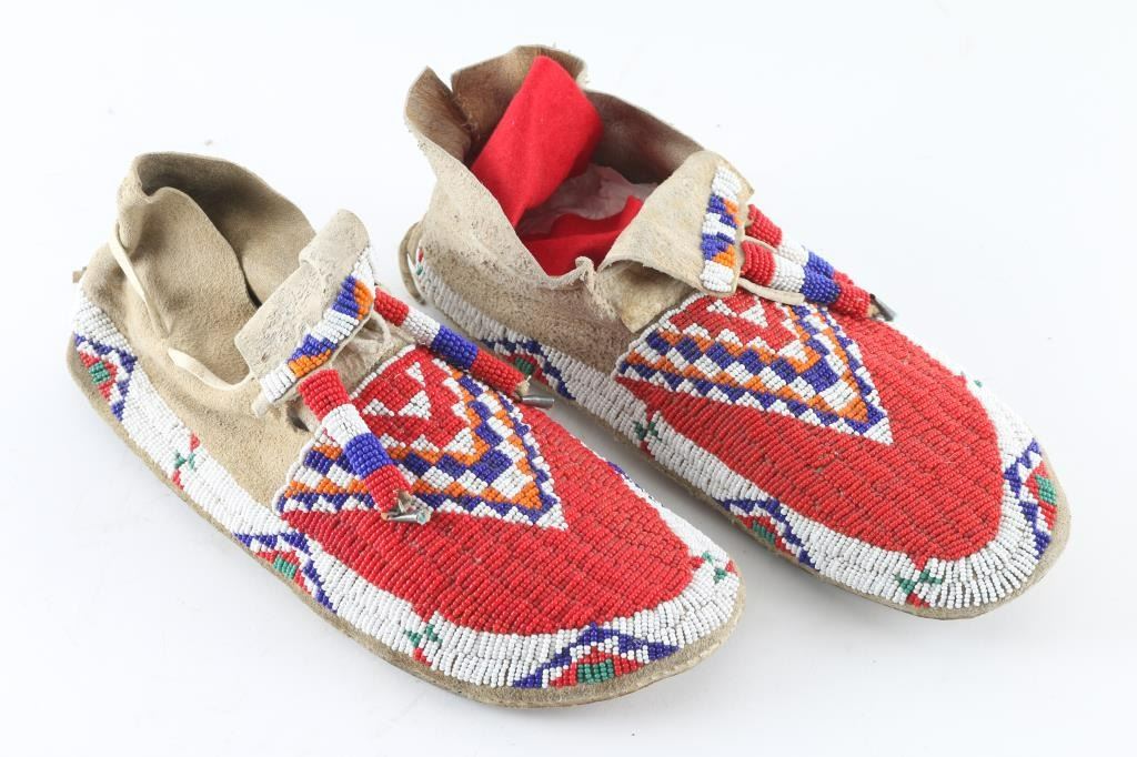 Leather With Fully Beaded Top In Red, White, Blue And Green In Very Good Condition