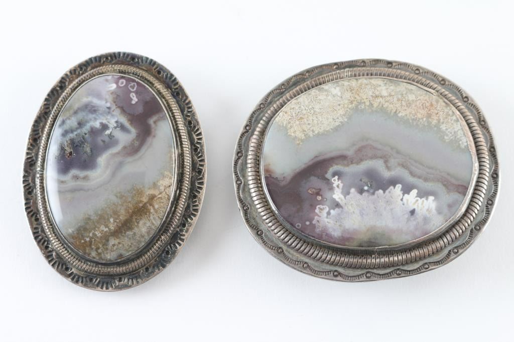 Quartz and sterling belt buckle (2.5"), and a matching bolo tie, strings not included. Both in good condition.