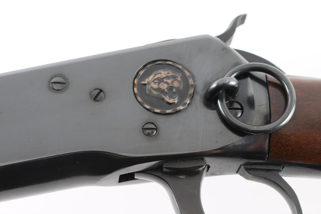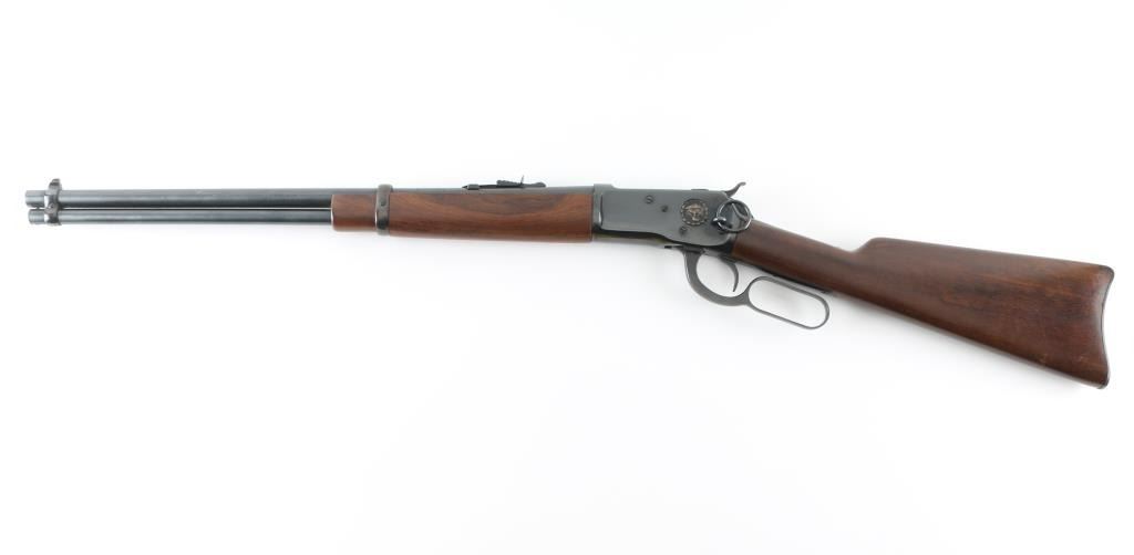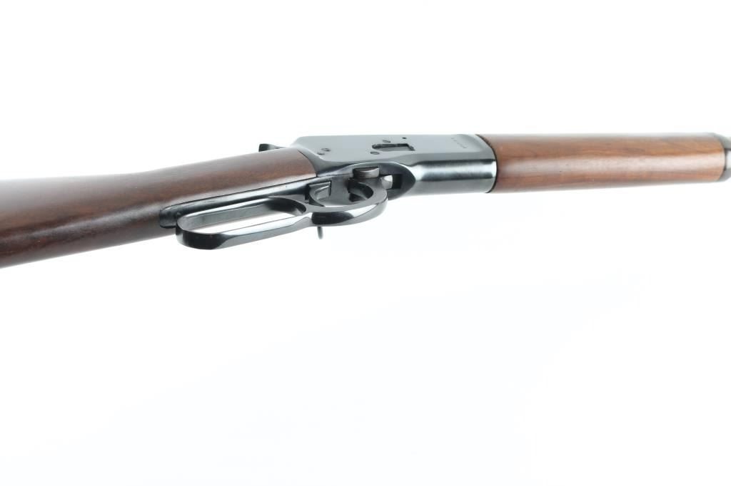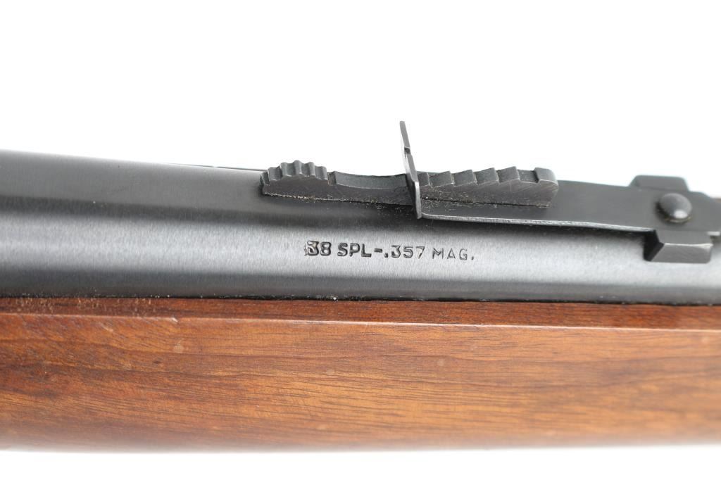 Brazilian made lever action rifle chambered for .357 Magnum and .38 Spl. cartridges. It features a 20" blued barrel and receiver with an embossed Puma head on the left in front of the saddle ring. A full length magazine tube, barrel banded blade front sight, adjustable rear sight, serrated hammer spur and smooth trigger. The smooth wood stocks have a barrel band on the forearm and a smooth metal butt plate. Metal finish looks good with minor signs of use and handling. Wood stocks look very good with minor signs of handling. Bore looks good, needs cleaned. LOP is 13.25". Condition is NRA Very Good *Modern Firearm*