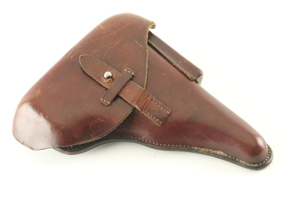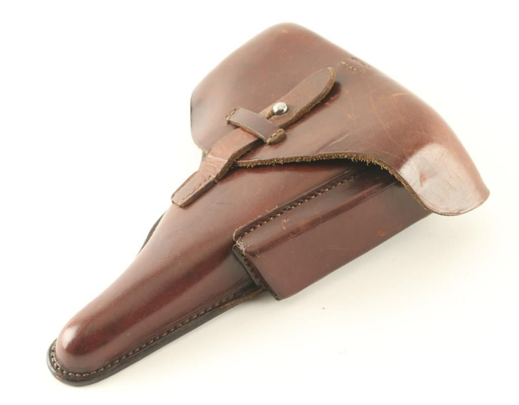 Very rare Brown leather holster for the Walther contract Swedish HP pistol, known in Sweden as the M39. Unmarked, very good condition with all stitching intact.