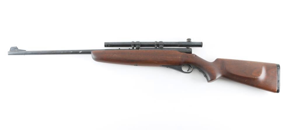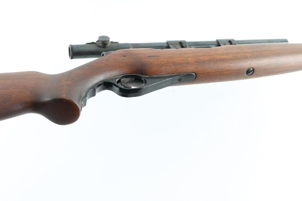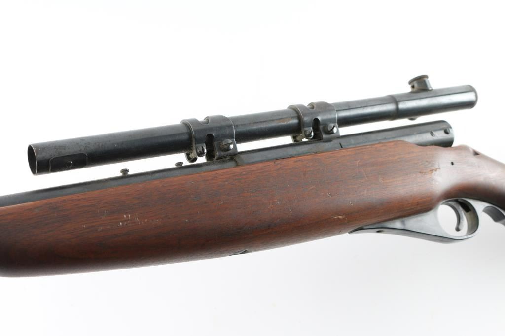 'Parts Gun' There is NO bolt. It has a 20" blued barrel and receiver with a hooded circle front sight, no rear sight, grooved trigger with plastic finger groove trigger guard. It sits in a one piece wood stock that has a cheek rest for right hand shooters, the magazine tube in the butt and a 1/2" black butt plate. The metal finish is fading and there is some surface rust scattered through out. Wood stock is fine but does have a small chip missing on the top left by the back of the receiver. Bore looks good, needs cleaned. LOP is 14". Comes with a Mossberg No. M4c 4x scope with rings that fit the integral scope mounts machined into the receiver. Condition is NRA Poor...Parts Only *C&R Firearm*