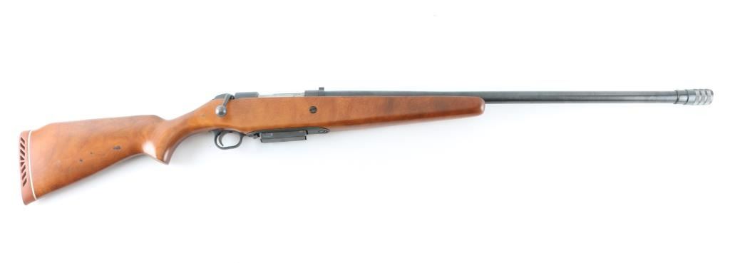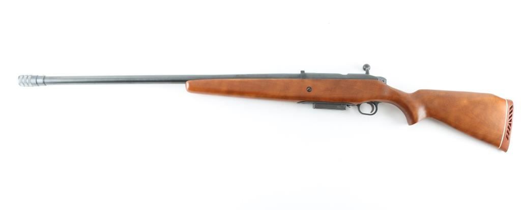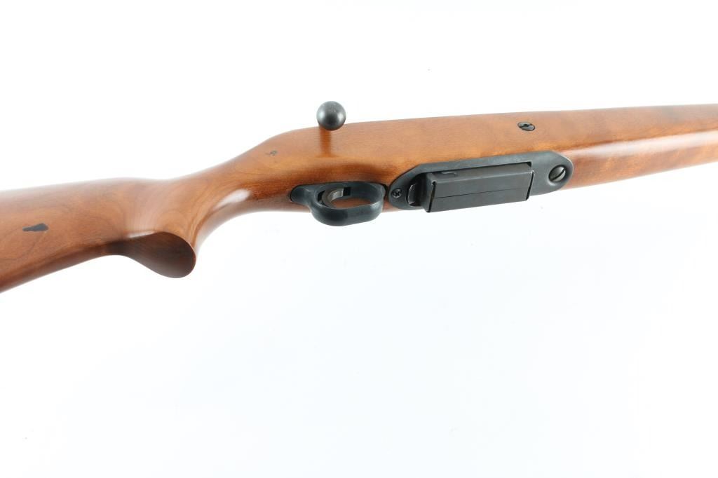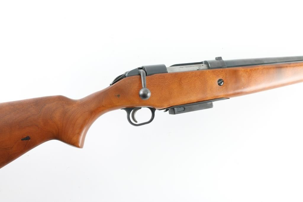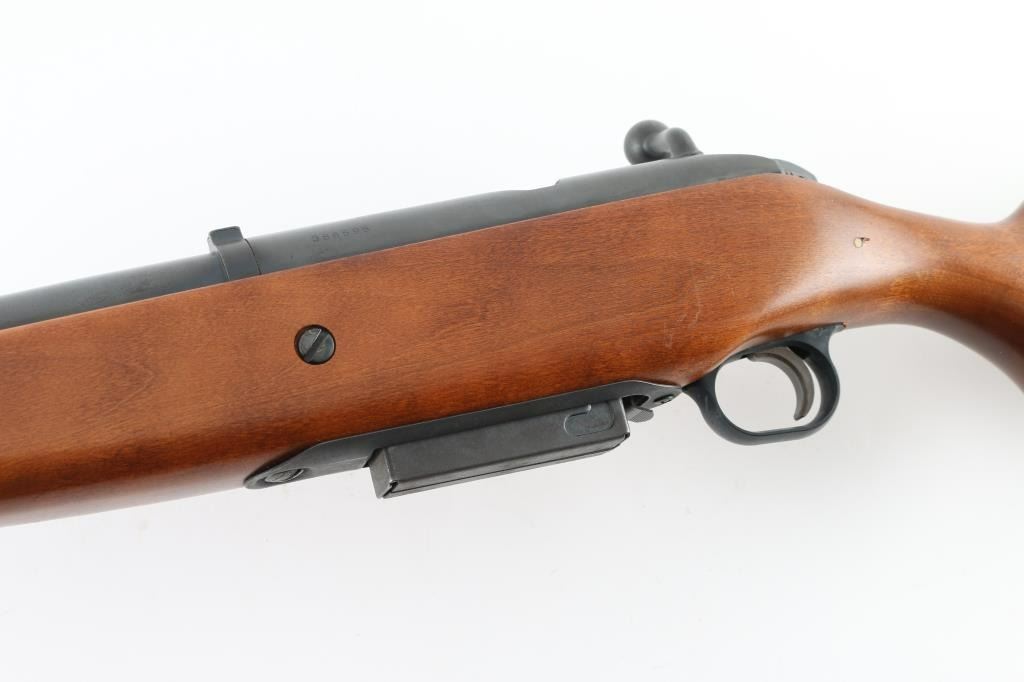 American made bolt action shotgun chambered for 2.75" & 3" 12 gauge shells, manufactured between 1970 and 1983. It features a 28" blued, C-LECT-CHOKE barrel and receiver with a steel bead front sight and a raised, channel cut rear sight. It has a smooth trigger, plastic trigger guard, thumb safety on the rear of the bolt and a detachable box magazine. All this sits in a plain smooth wood stock with a rubber recoil pad and white spacer. The metal finish looks very good with minor signs of handling with a slight fading of the blue on top of the barrel at the end of the forearm (looks like it leaned against something). Wood stock looks fine with some kind of black residue on the right side of the shoulder stock otherwise little sign of use or handling. Bore looks good, needs cleaned. LOP is 14". Condition is NRA Very Good *Modern Firearm*