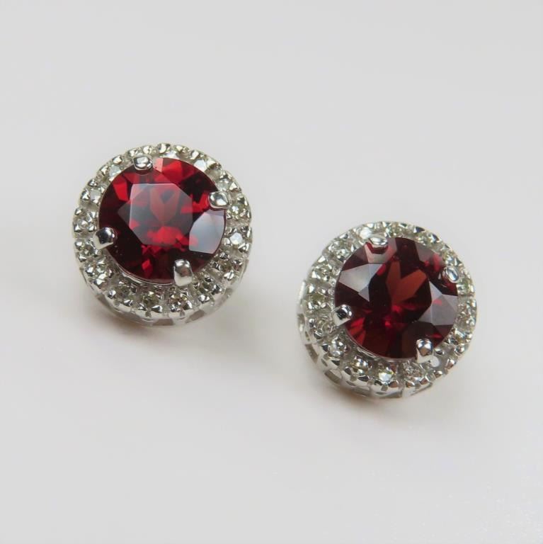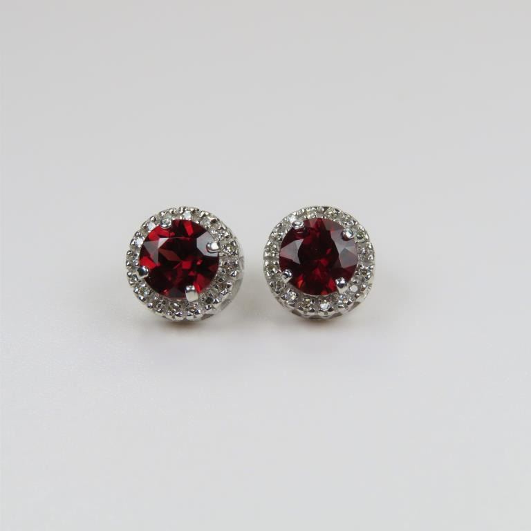 Lot 968a Radiant Red Garnet and Diamond Earrings