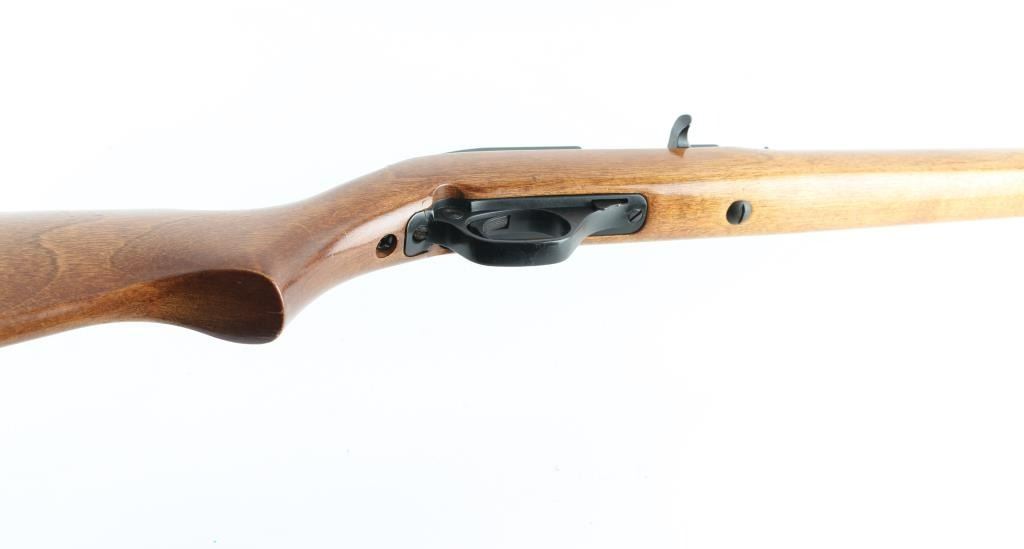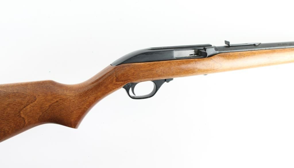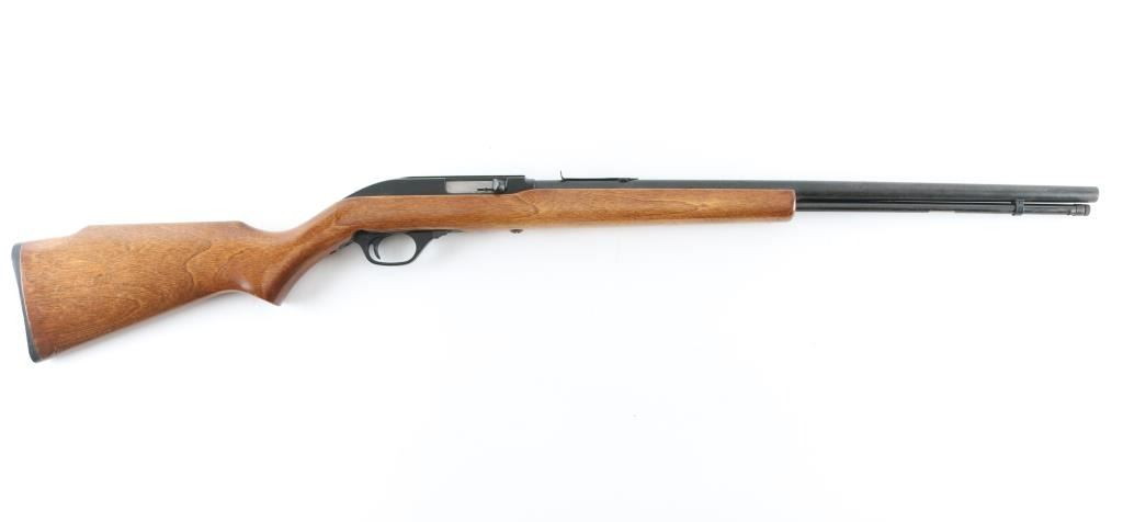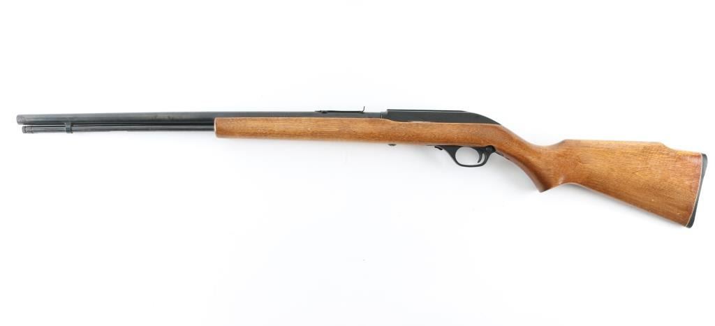 Tube fed semi-automatic sporting rifle chambered in .22 Long Rifle, manufactured in New Haven, CT circa 1960-1980’s. Features a blued 22" “JM” marked barrel, full-length 17 round tube magazine, missing front sight, elevation adjustable rear sporting sight, matte black finished aluminum receiver with integral tip-off optic rail, serrated nickel plated trigger, alloy trigger guard, cross-bolt safety, and birch semi-pistol grip shoulder stock, high comb & checkered black buttplate. Metal finish has dulled, with scattered spots of pitting/rust throughout. Action is sound, the micro-groove bore appears good/bright. Wood is very good with some handling loss to the varnish. Needs some TLC. NRA condition-Fair Modern firearm