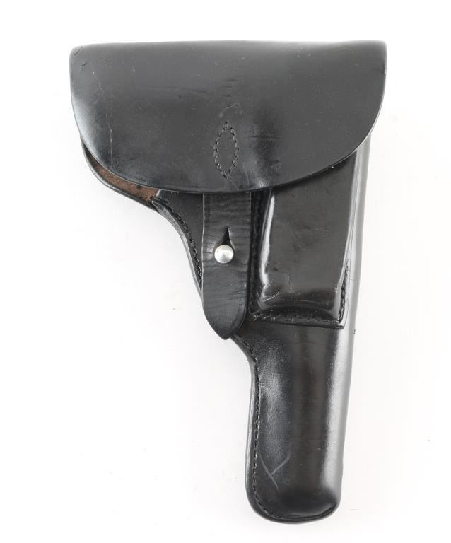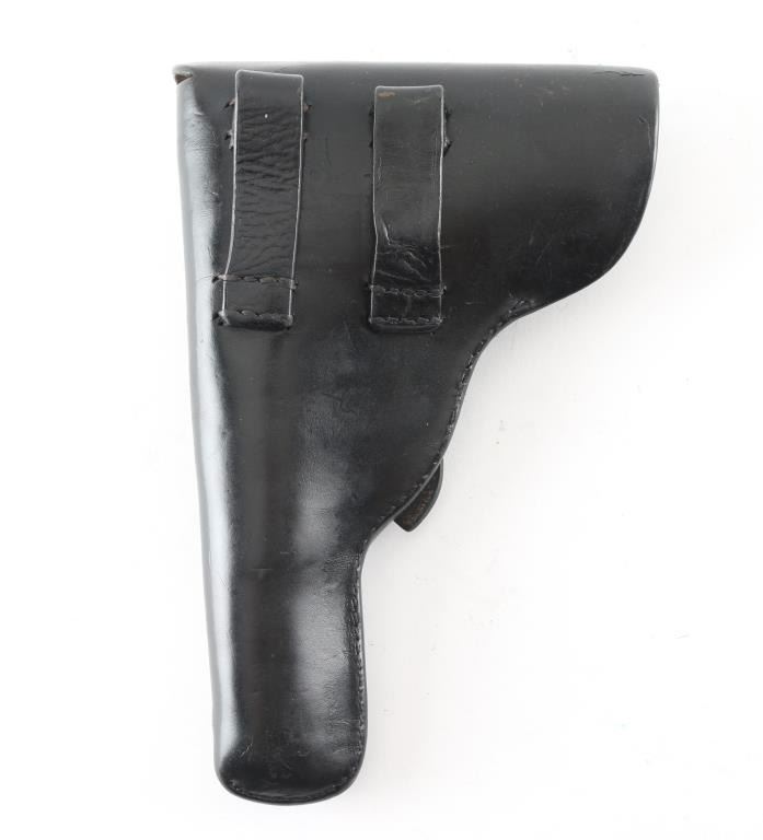 Black leather holster for the Astra 600/434 pistol issued to West German Police post war. Maker marked on the inside "A. Winderlich, Berlin S.W." with Eagle proof. Very good condition.