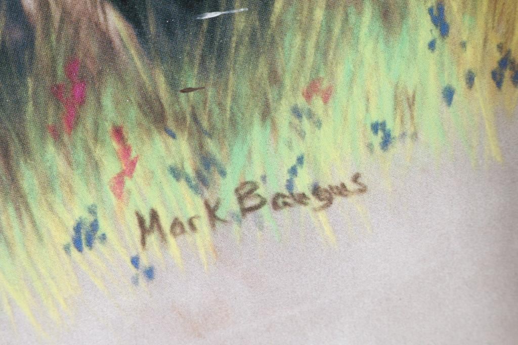By Mark Bargas signed lower right framed in wood frame, measuring 20x14"