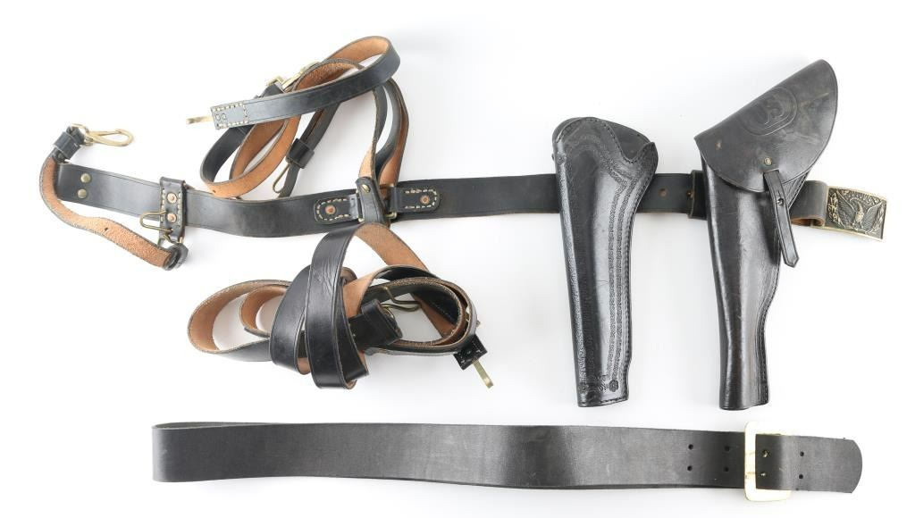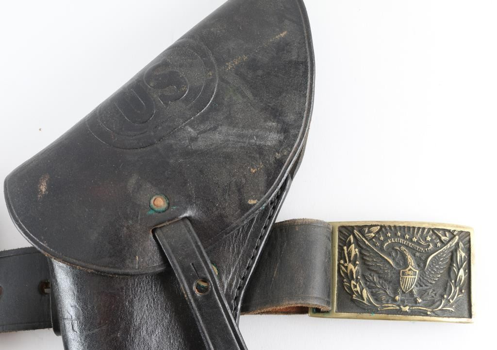 For Civil War Re-enactory, includes 2 percussion revolver holsters, 2 sword belts and more as pictured very good to almost fine condition.