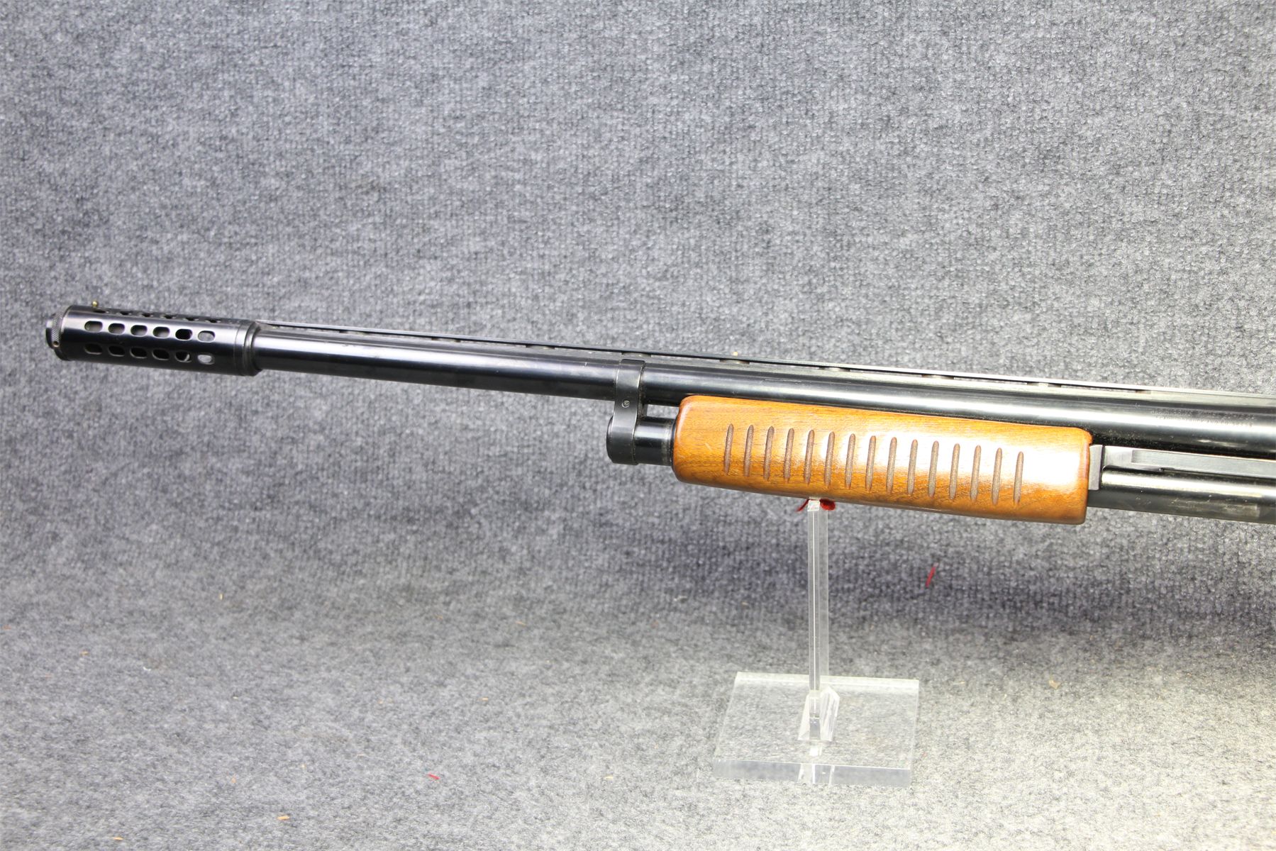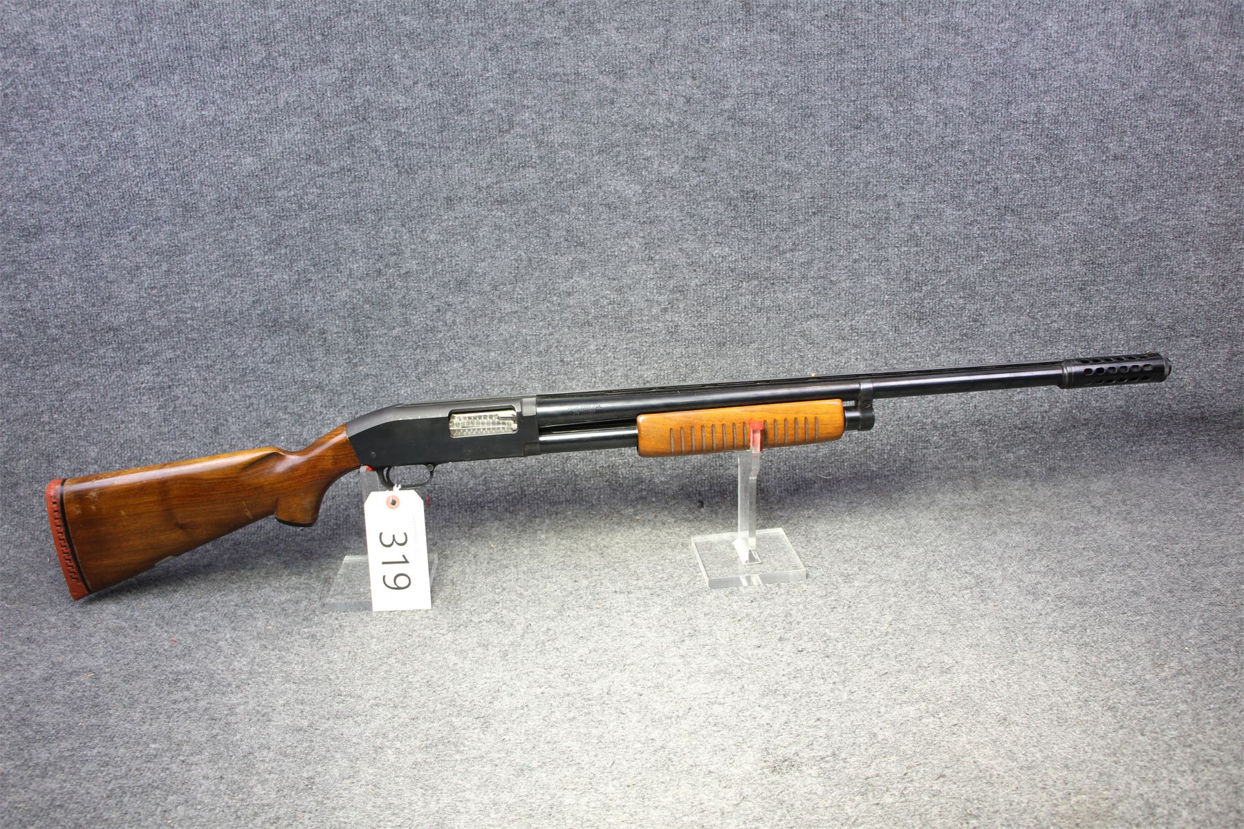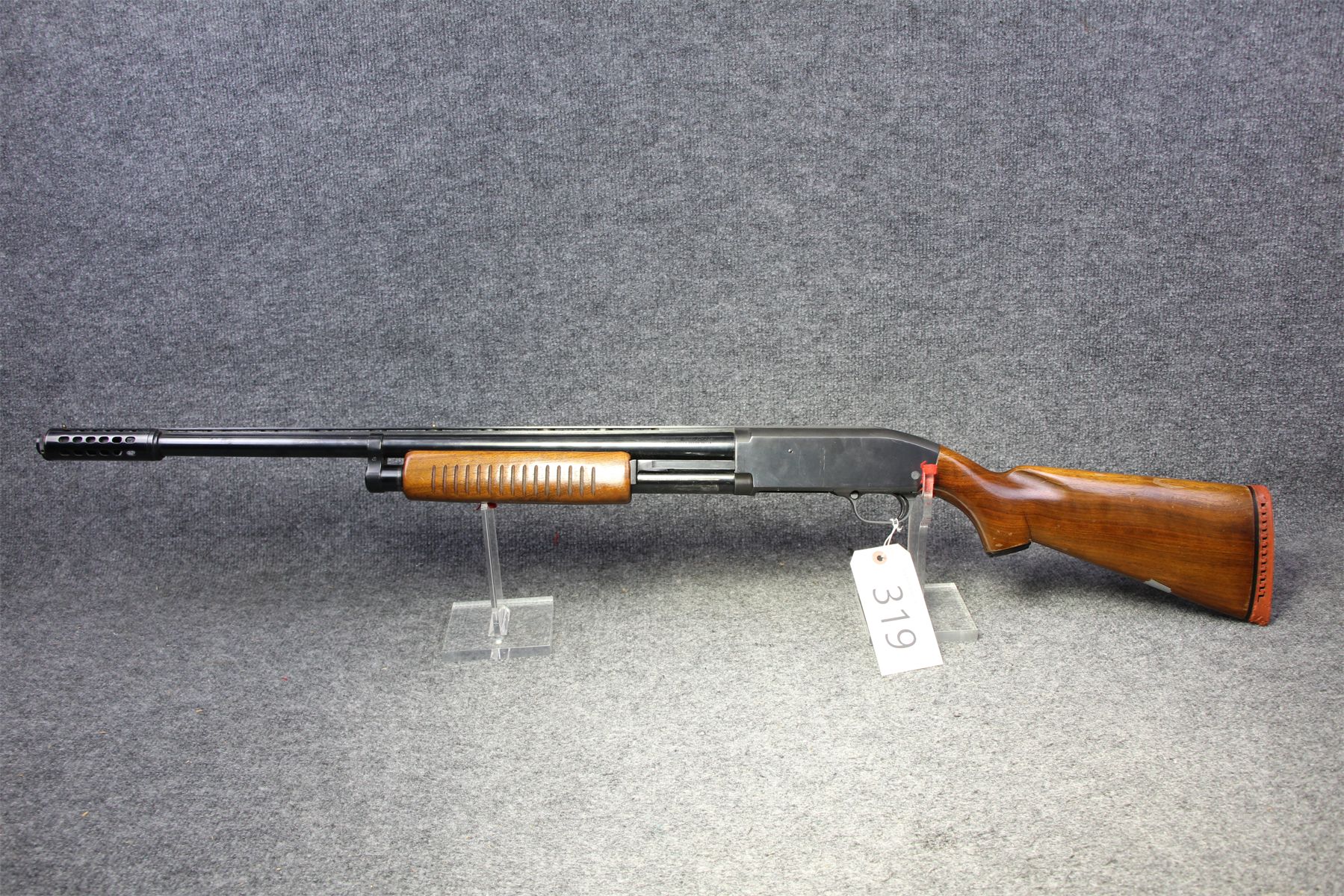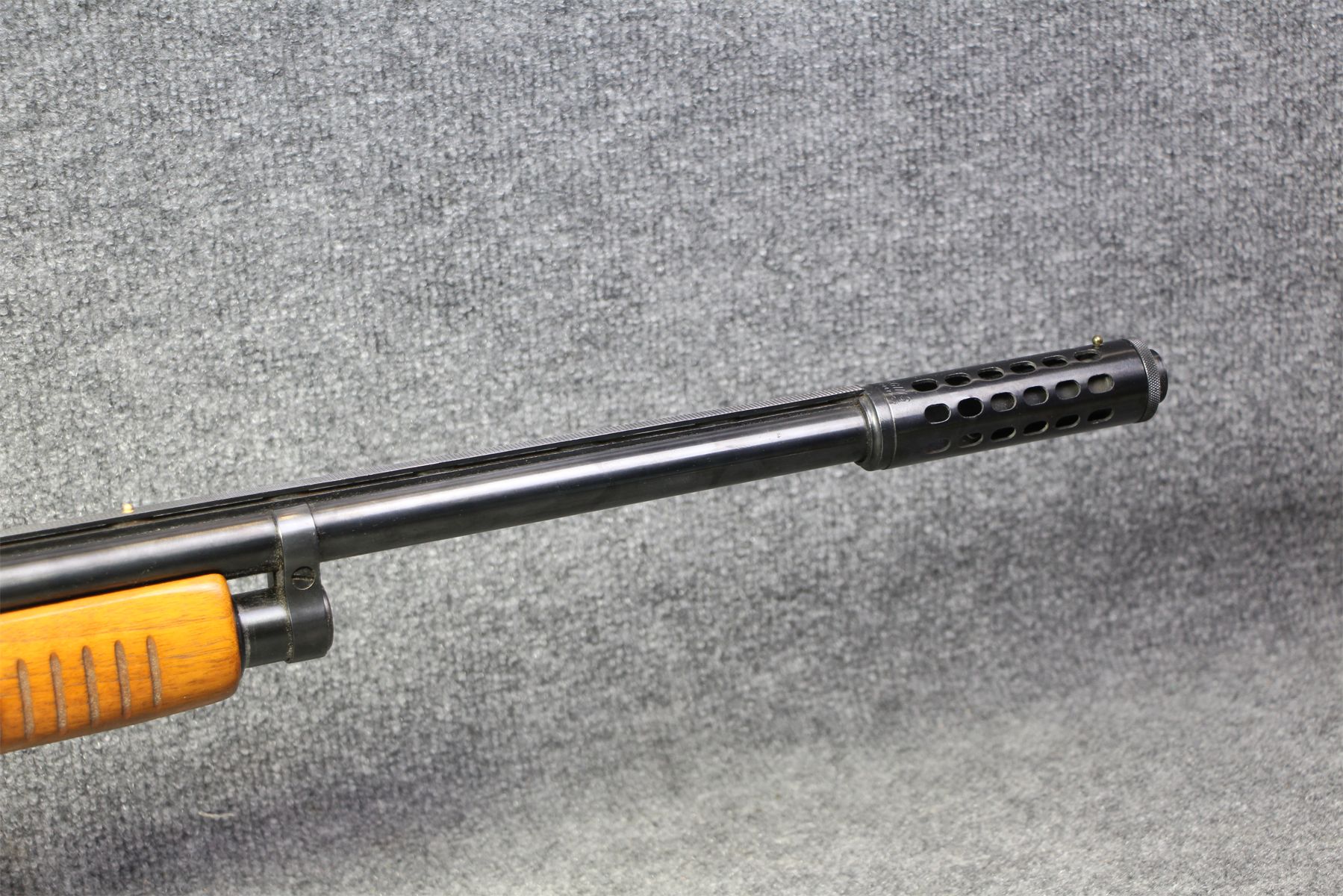 Comes with a muzzle break. Weird removable choke. Vent rib with 2 beads. No rust. Handling marks.