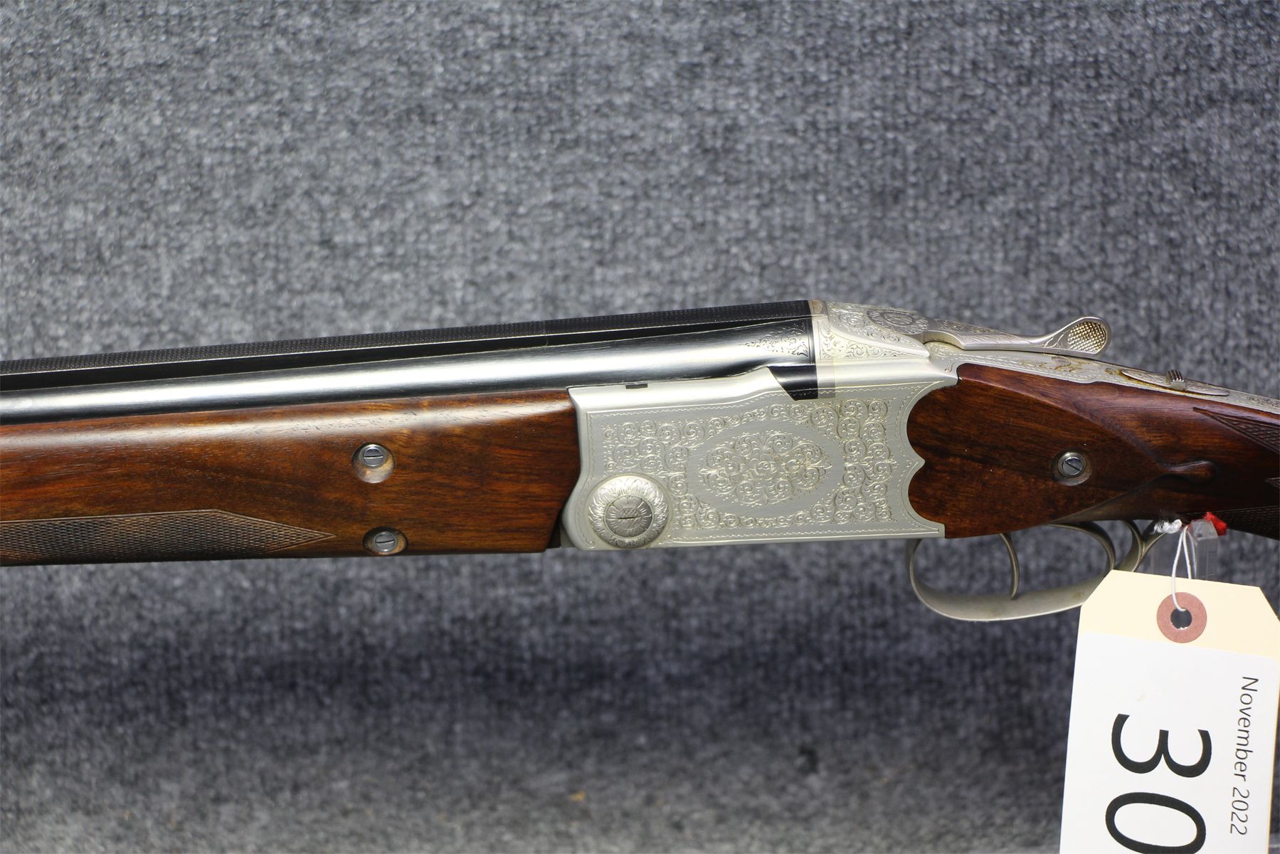 High end Baikal O/U. Not a mark on this gun. Highly engraved aluminum receiver. Double triggers. 1 bead solid rib.