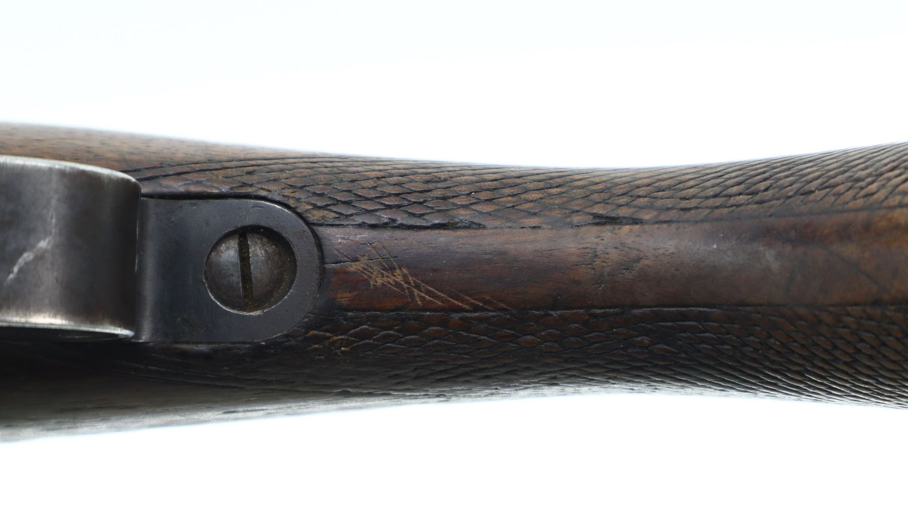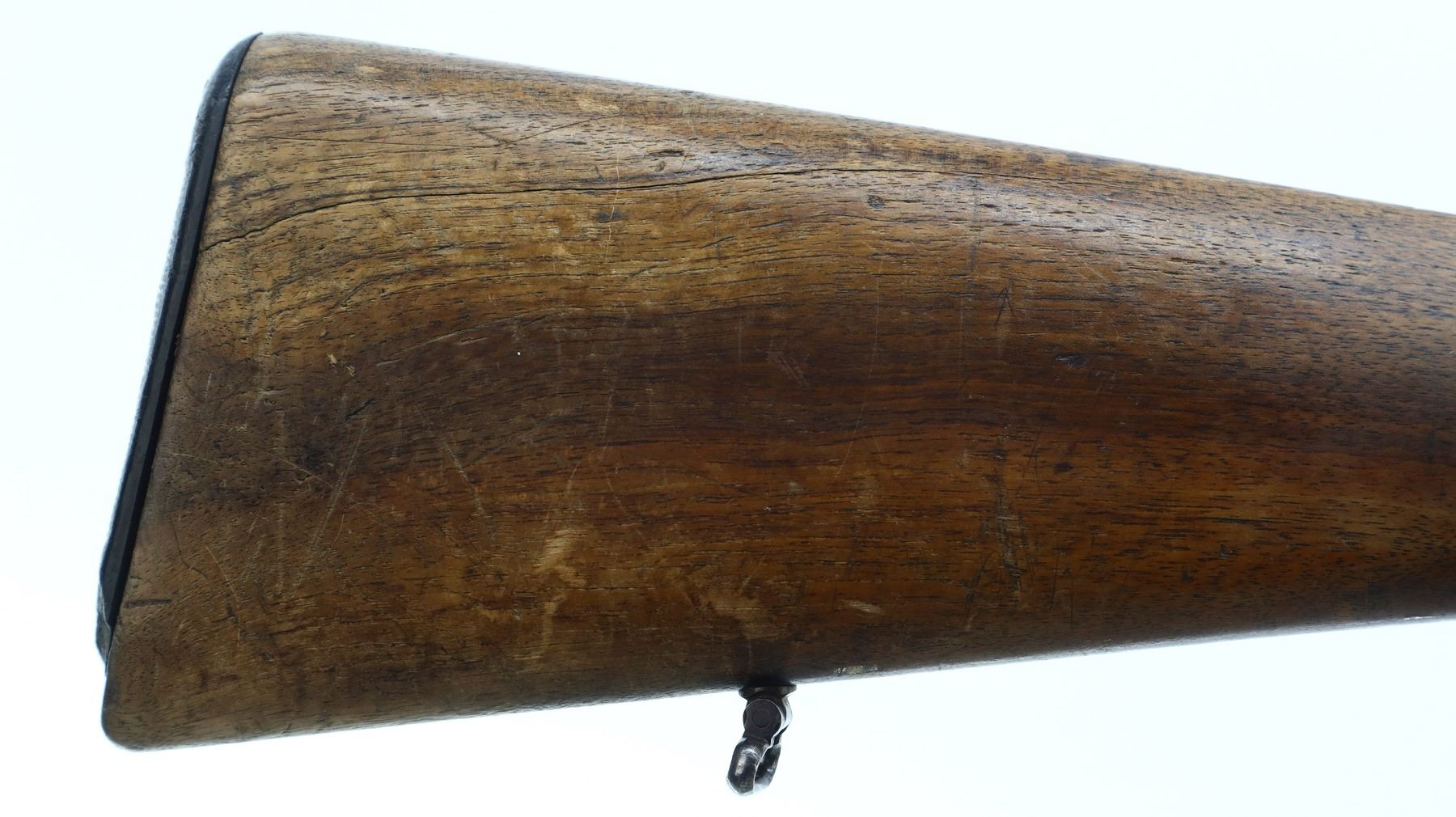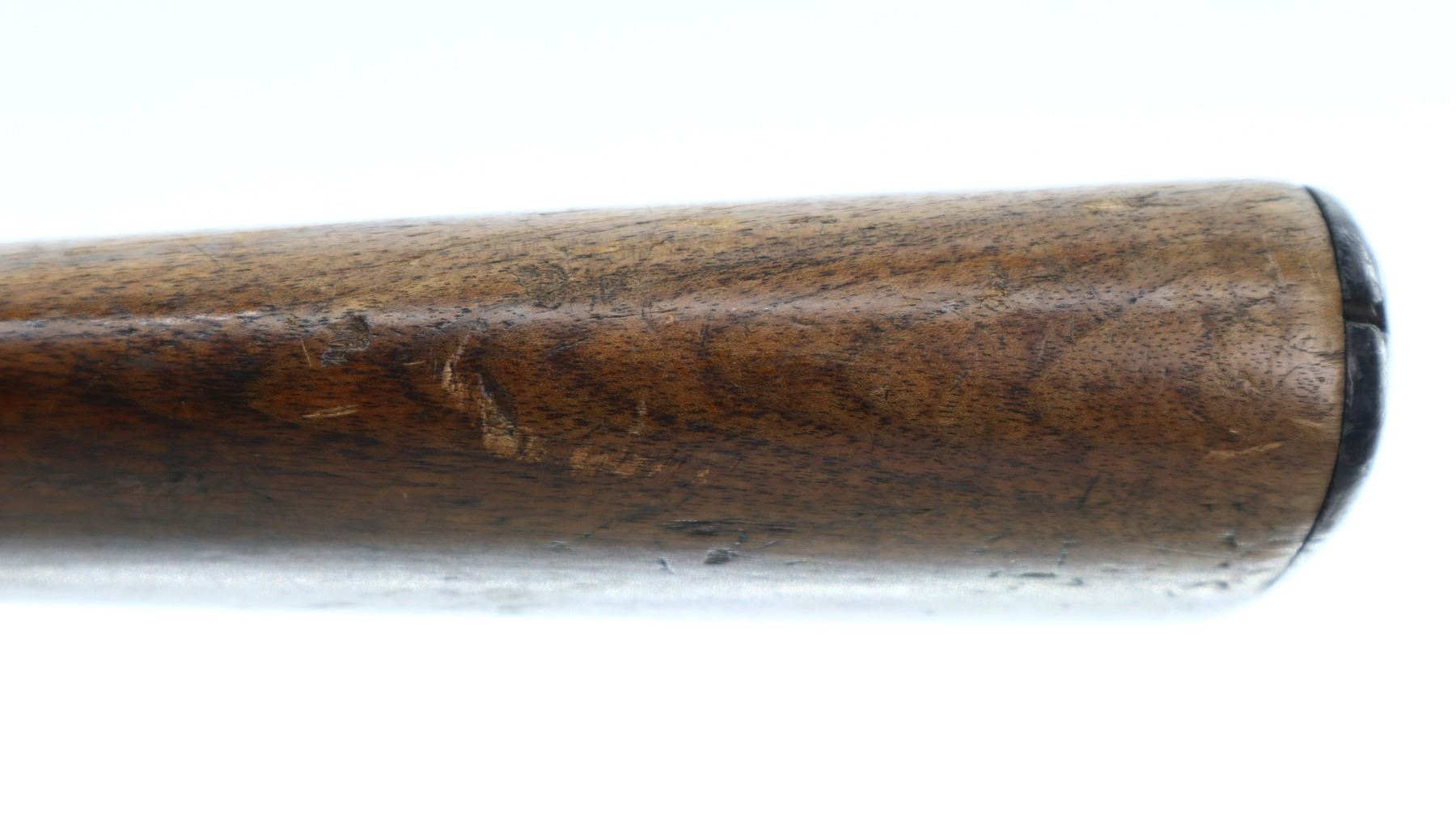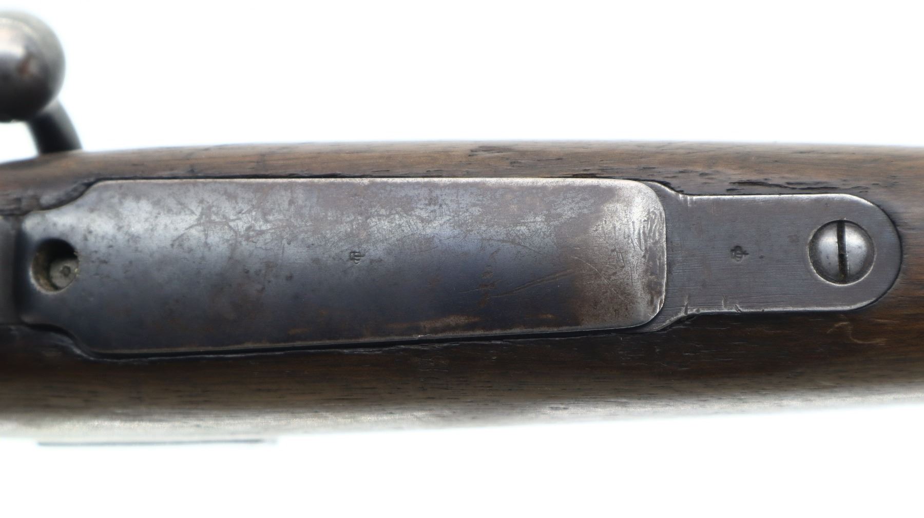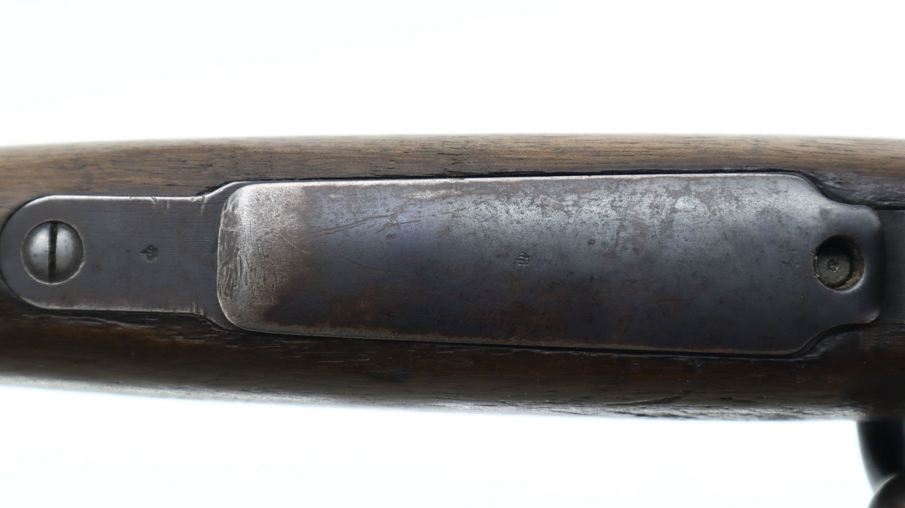 3+/10, HUSQVARNA, MODEL: SMALL RING SPORTER, CALIBER:9.3 X 57, BORE IS FAIR, WORN, LIGHT PITTING. BLADE FRONT SIGHT WITH RAMP, REPAIRED U NOTCHED REAR SIGHT, BLUED FINISH, TURNED DOWN BOLT HANDLE. ONE PIECE WOOD STOCK, FOREND CHIPPED, CHECKERED PISTOL GRIP, GROOVED BLACK POLYMER BUTT PLATE CHIPPED AT TOE, SLING SWIVELS. METAL FINISH SHOWS SOME LIGHT RUST SPECKLES, SCRATCHES, HANDLING MARKS AND WEAR. STOCK SHOWS MARKS, SCRATCHES AND WEAR. , ACTION: BOLT ACTION RIFLE, BARREL LENGTH: 24", SERIAL # 1587, CONDITION: 3+/10, CLASS: CANADIAN NON RESTRICTED
