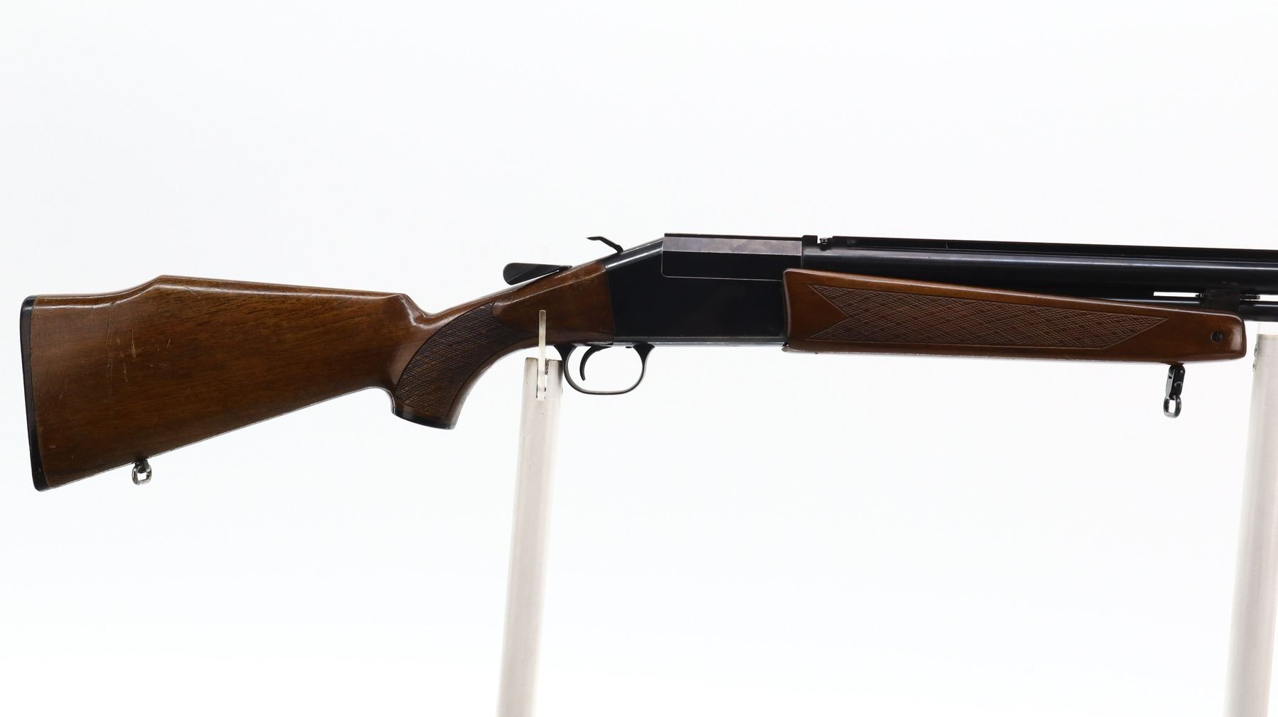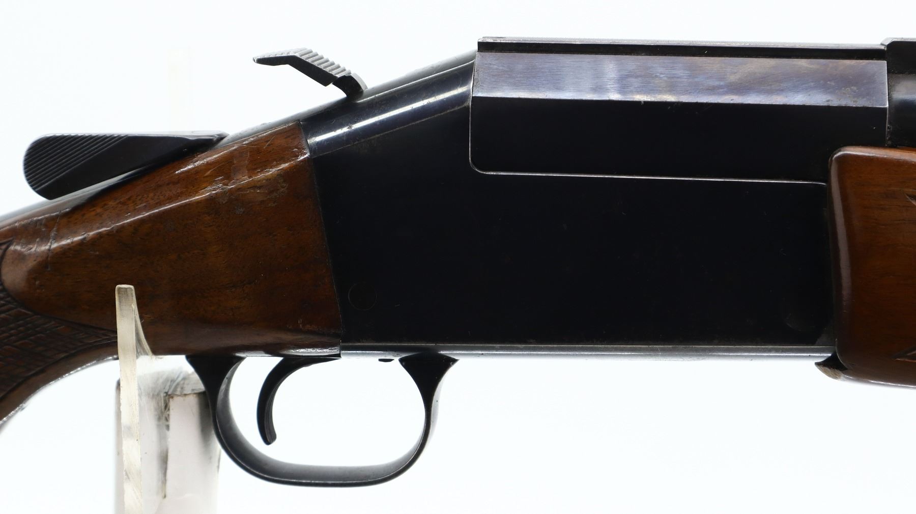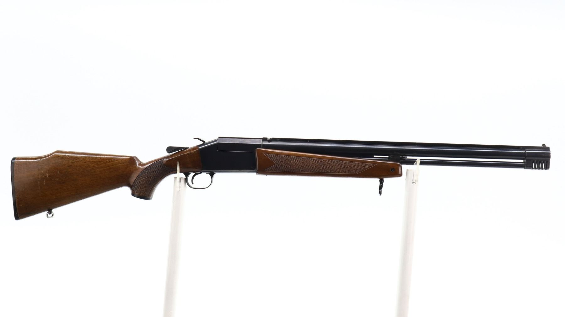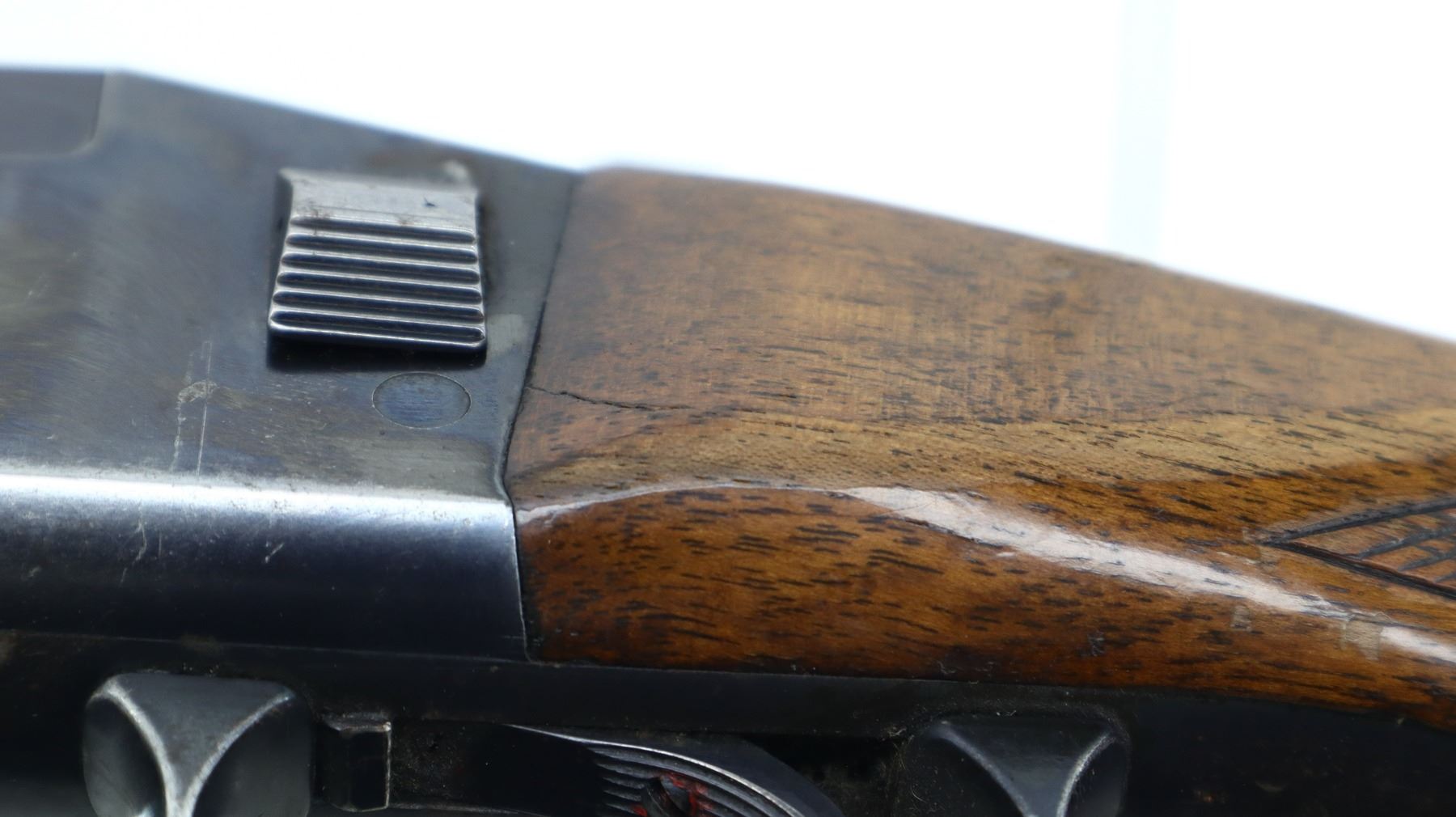 4/10, TIKKA, MODEL: COMBINATION, CALIBER:12 G X 2 3/4"/ 222 REM, SHOTGUN BORE IS VERY GOOD, RIFLE BORE IS GOOD LIGHT PITTING. REMOVABLE THREADED CHOKE, NONE INSTALLED. BLADE FRONT SIGHT, FOLDING ADJUSTABLE U NOTCHED REAR SIGHT, BLUED FINISH, SOLID RIB ON BARREL WITH INTEGRAL SCOPE RAIL ABOVE CHAMBER, GROOVED SPUR HAMMER, BARREL SELECTOR ON LEFT SIDE OF RECEIVER. TWO PIECE WOOD STOCKS, CHECKERED FOREARM (DOES NOT FIT PROPERLY), CHECKERED PISTOL GRIP CRACKED BEHIND UPPER AND LOWER TANGS, CHEEK REST, GROOVED BLACK POLYMER BUTT PLATE, GRIP CAP, SLING SWIVELS, MUZZLE BREAK IN FRONT OF RIFLE BARREL. METAL FINISH SHOWS SOME SCRATCHES, HANDLING MARKS AND WEAR. STOCKS SHOW SOME MARKS, SCRATCHES AND WEAR. , ACTION: HINGED COMBINATION GUN, BARREL LENGTH: 24.25", SERIAL # 36156, CONDITION: 4/10, CLASS: CANADIAN NON RESTRICTED