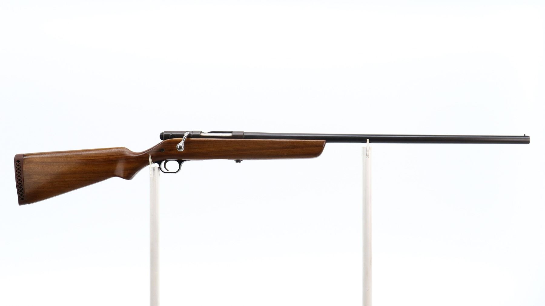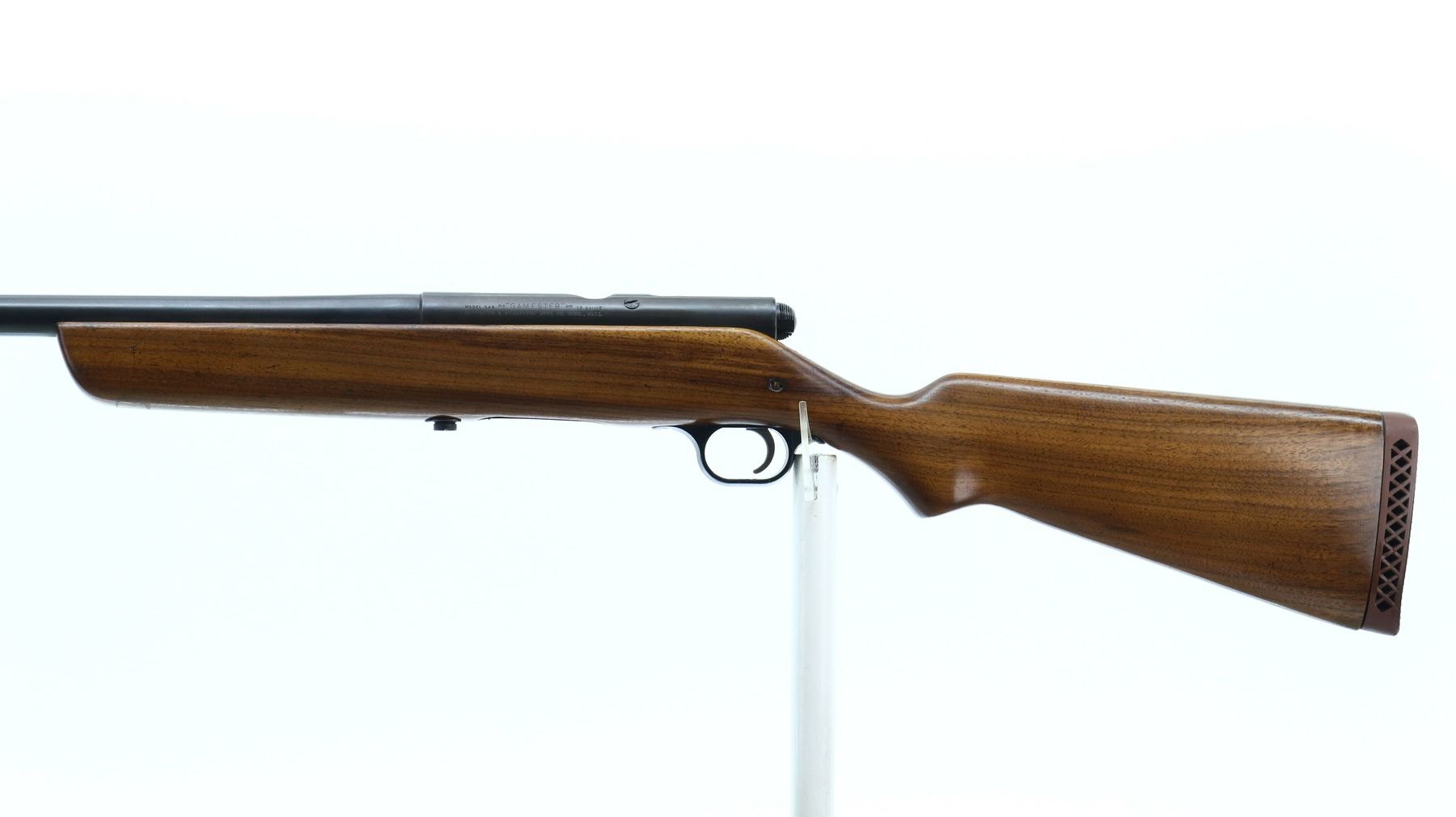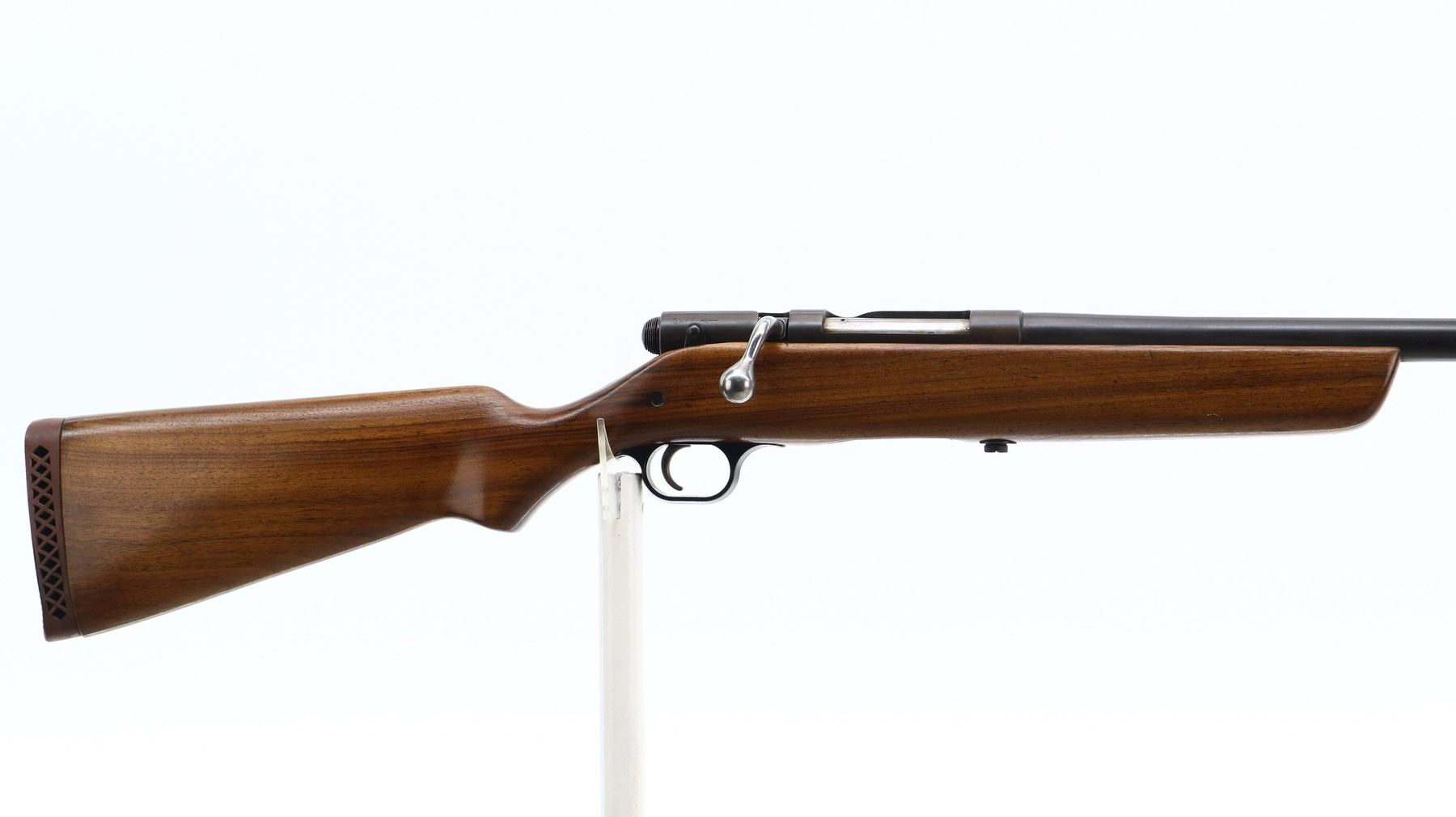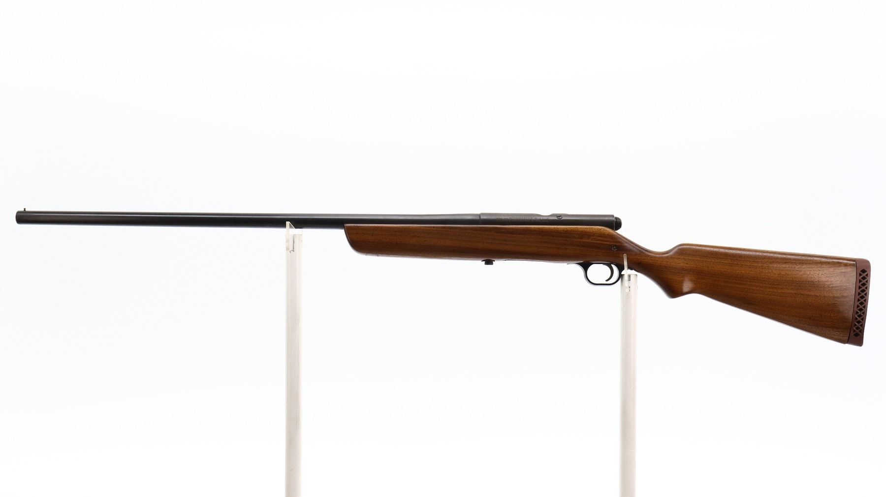 3/10, HARRINGTON & RICHARDSON, MODEL: 348 GAMESTER, CALIBER:12 G X 2 3/4", BORE IS VERY GOOD. FIXED MOD CHOKE. BRASS BEAD, ROUND BARREL. ONE PIECE SMOOTH WOOD STOCK, PISTOL GRIP, CRACKED BEHIND RECEIVER, BROWN VENTED RUBBER RECOIL PAD. METAL FINISH SHOWS LIGHT PITTING, RUST SPECKLES, HANDLING MARKS AND WEAR. STOCK SHOWS MARKS, SCRATCHES AND WEAR. , ACTION: BOLT ACTION SHOTGUN, BARREL LENGTH: 28.25", SERIAL # NA, CONDITION: 3/10, CLASS: CANADIAN NON RESTRICTED