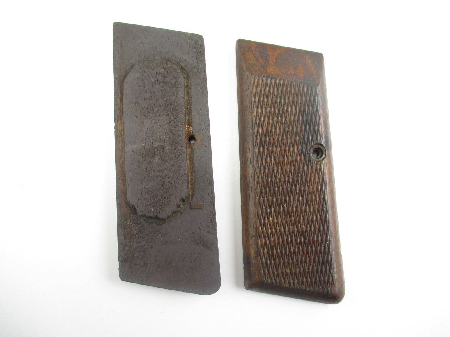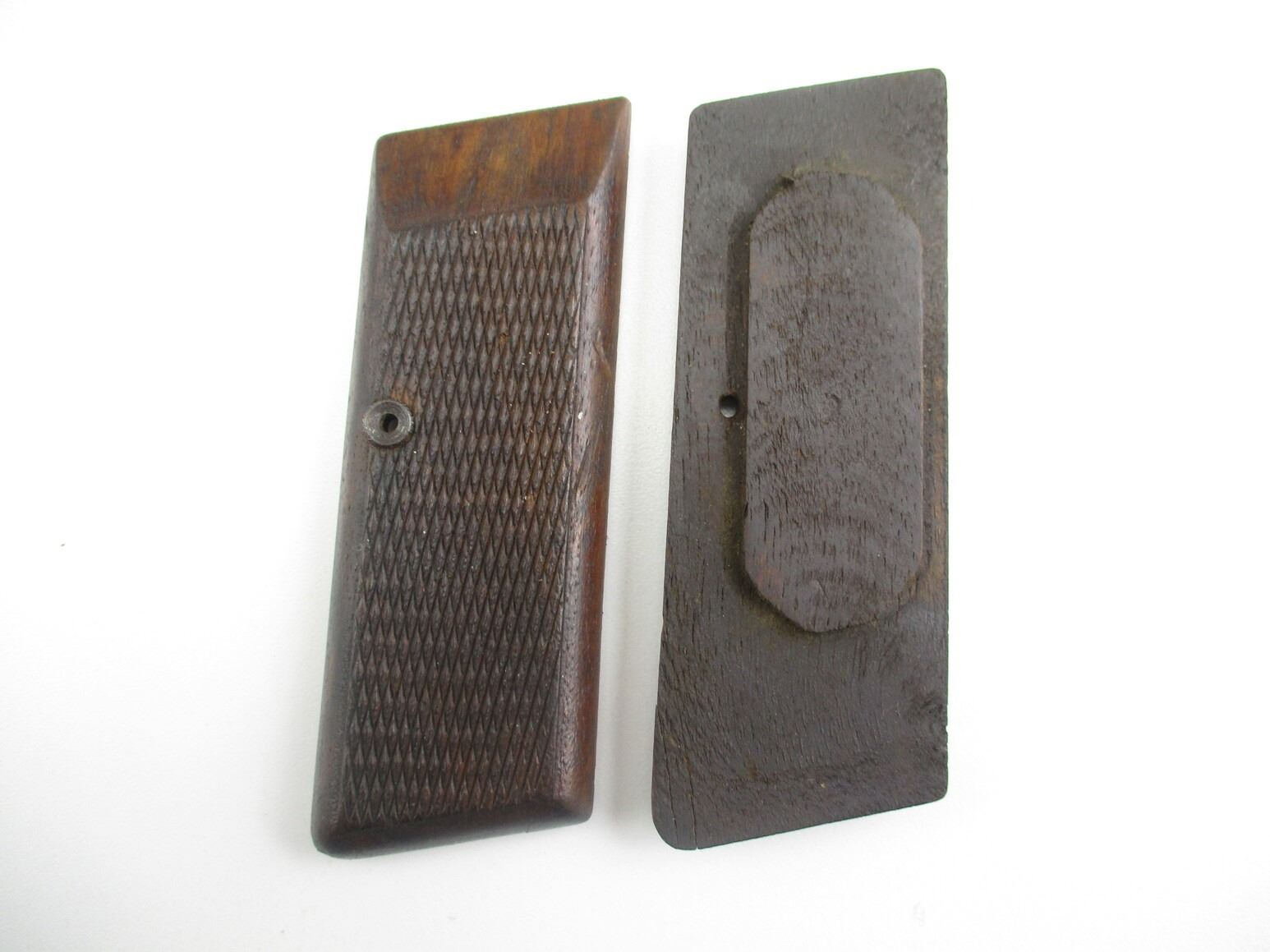 FN BROWNING MODEL 1922 PISTOL GRIPS , ORIGINAL WALNUT GRIPS, CHECKERED, USED, MISSING MARKINGS SCREW.