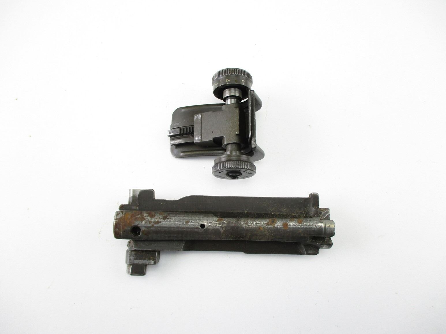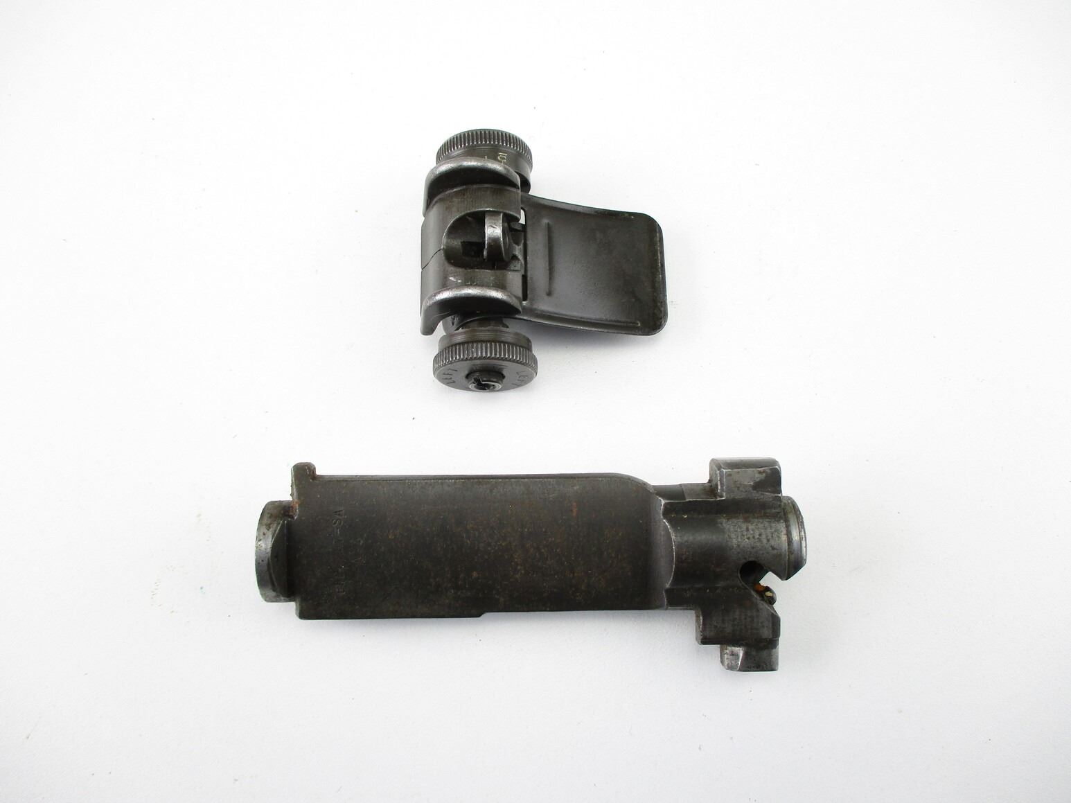 M-1 GARAND PARTS , INCLUDES: COMPLETE REAR SIGHT, WITH ELEVATION & WINDAGE ADJUSTMENTS, & STRIPPED GARAND BOLT, MARKED 652827-SA A11