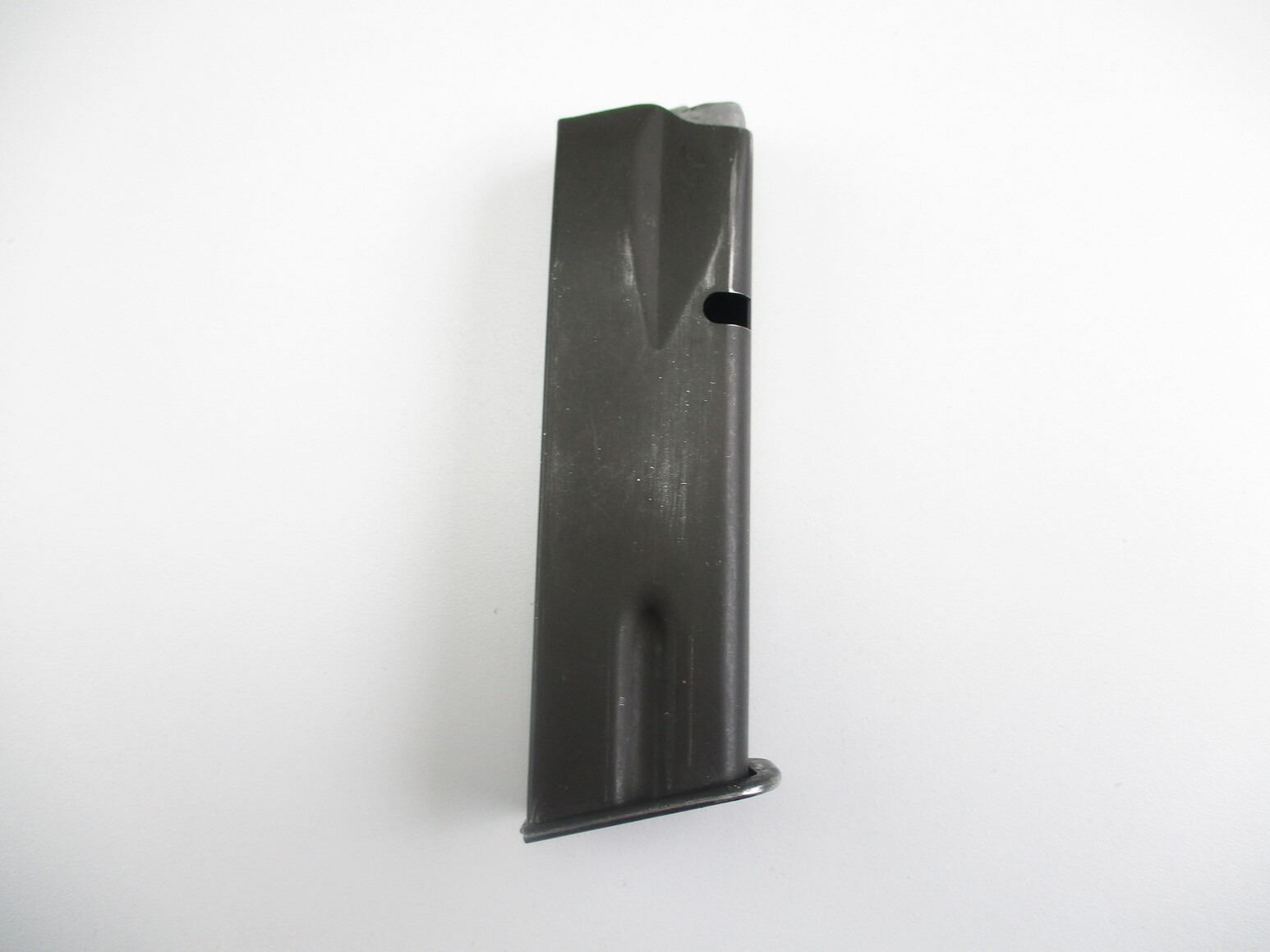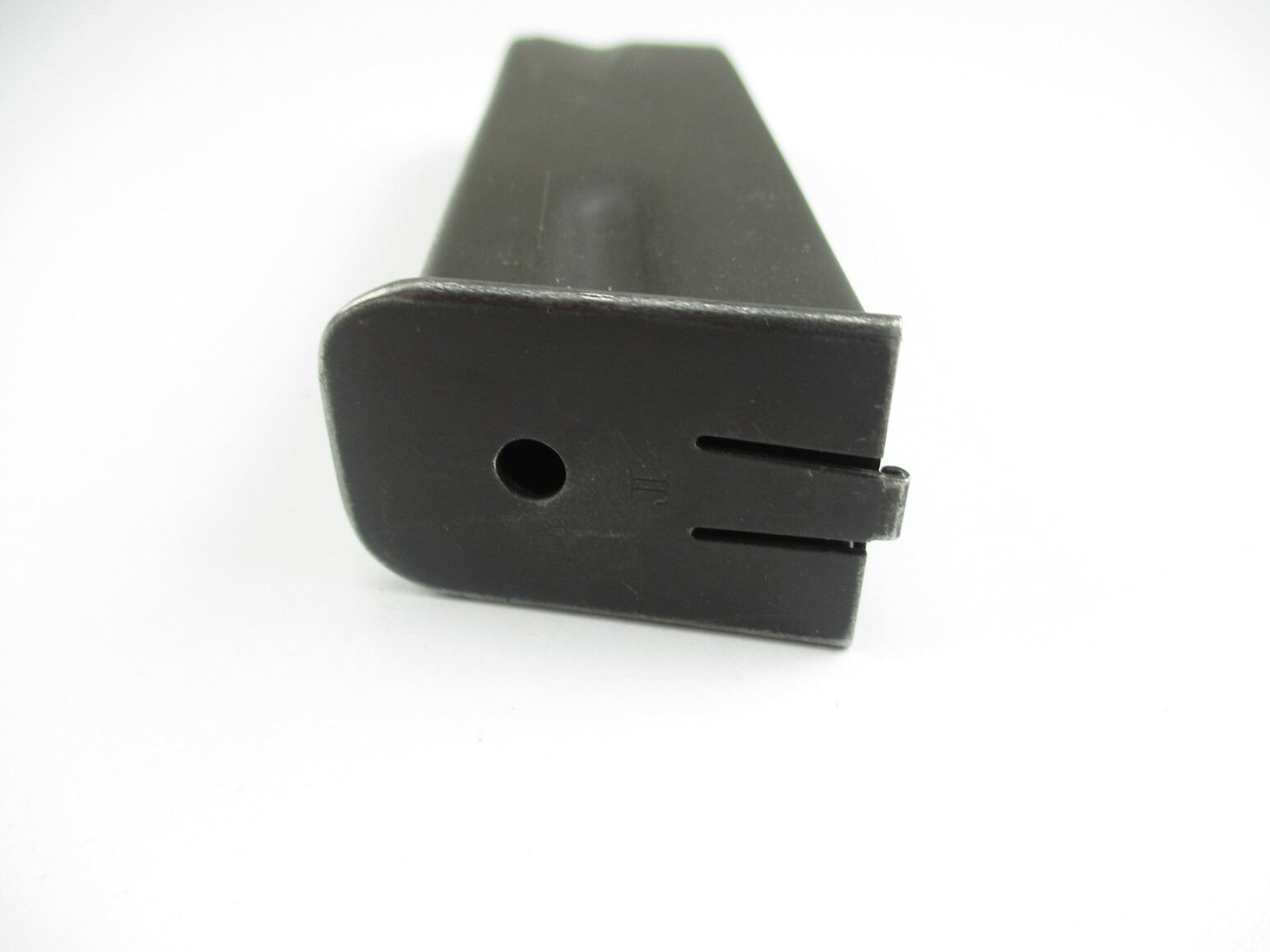 INGLIS HI-POWER 9MM PISTOL MAGAZINE , 9MM, 10/13 ROUND PINNED MAG, BLUED STEEL, ALLOY FOLLOWER "JI" MARKED ON BOTTOM OF MAG.
