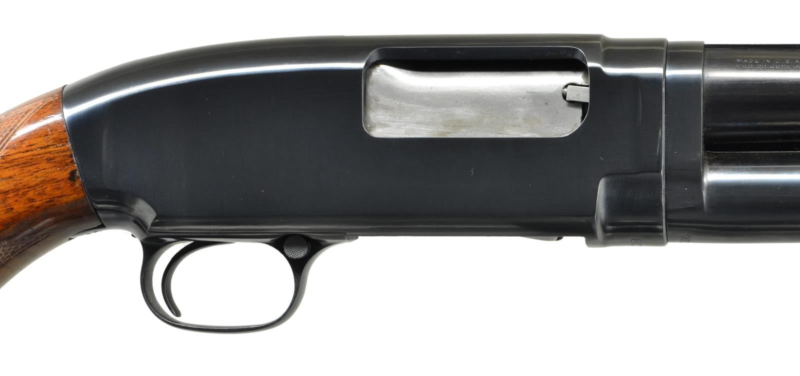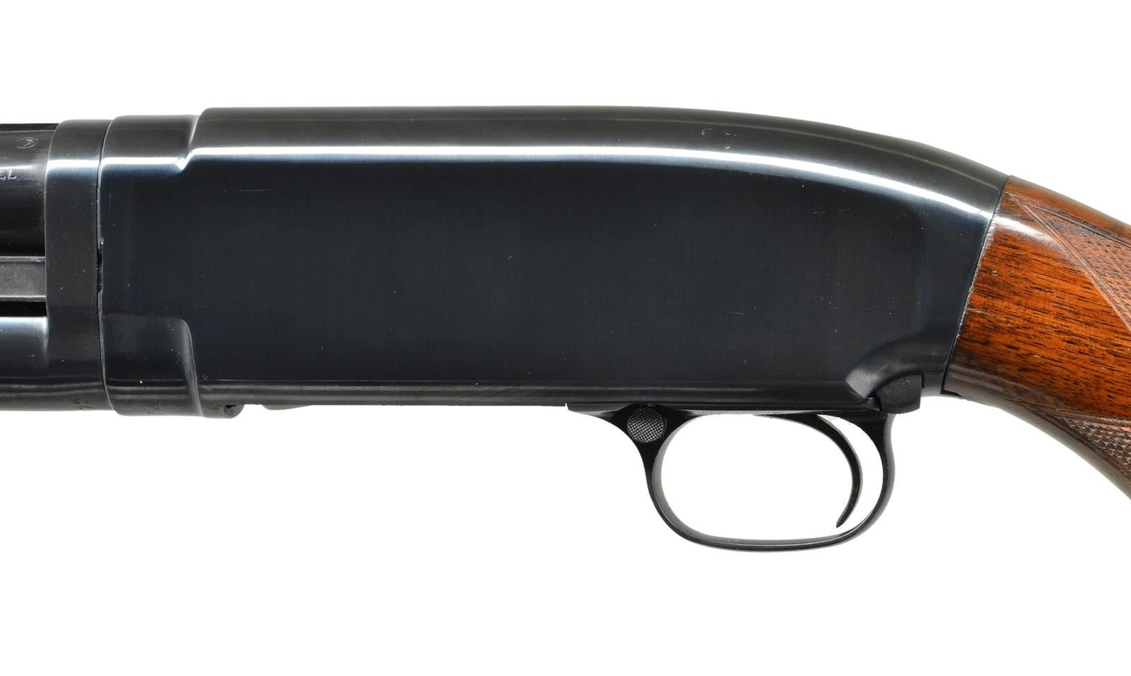 Cal. 16 Ga., 2 3/4". S# 803872. Bbl. solid ribbed shortened to 28 1/2" w/ cyl. choke & steel bead. Original choke marking was full. Winchester checkered walnut beavertail forearm. Pistol grip Field stock has added checkering & original buttplate. Mfg. 1939. CONDITION: over 97% reblued finish. Original forearm finish shows light marks. Stock finish shows light wear w/ numerous sm. scratches & marks. Receiver extension is renumbered to match the action. Sound mechanics. Very good bore. (21-2141/DS). CURIO. $500-800.