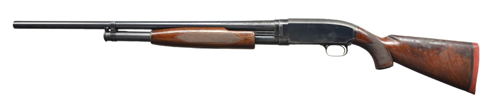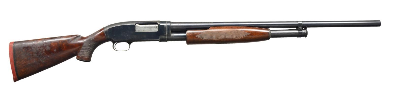 Cal. 12 Ga. S# 1066254. Bbl. 26” plain, w/ 2 3/4” chamber, marked “WS1” on breech end Bbl. & “CYL” choke on gauge. Added red hi viz front sight. Matching S#s on receiver & Bbl extension; frame also marked “SKEET” Blued metal and checkered forend & pistol grip buttstock. LOP is 12 7/8” to factory recoil pad. CONDITION: metal retains about 80% finish w/ scattered freckling, corrosion, rust & fine pitting. Stock set has heavy water spotting on the butt & scattered dings & marks from use. Bore is good, bright w/ streaking full length. (22-3720/CW). CURIO. $450-650.