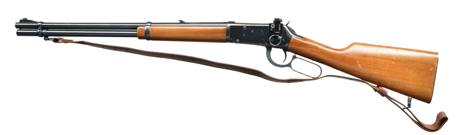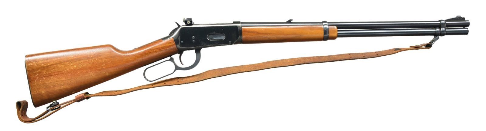 Cal. 44 Mag. S# 3408971M (1971). Bbl. 20" w/ ramp mounted bead front & flip up rear sights. Action has Williams receiver sight, saddle ring & stud. Walnut stock set w/ checkered steel buttplate. Brown military style sling on QD swivels; bbl. band stud & installed stud on toe. CONDITION: good blue w/ scratches & peppery oxidation. Tan colored stock finish good w/ numerous marks. Near excellent bore. (22-5432/MD). CURIO. $650-900.