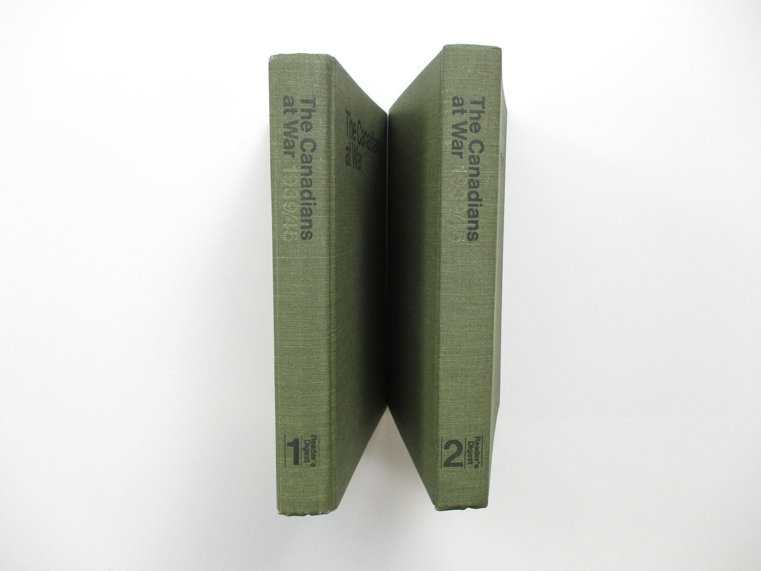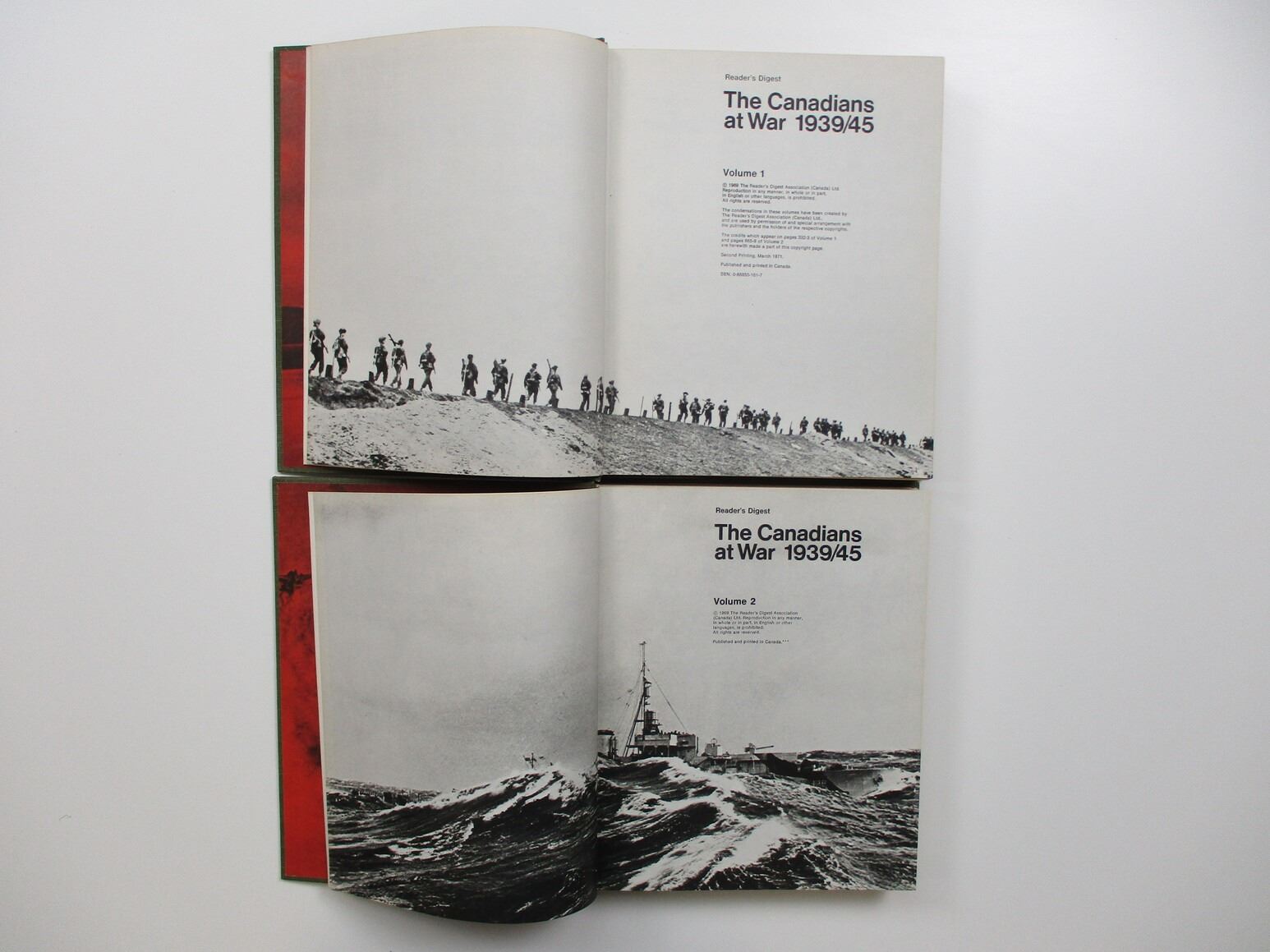 "THE CANADIANS AT WAR 1939/45" BOOK LOT, PUBLISHED BY READER'S DIGEST, HARD COVER, LOT INCLUDES; (1) VOLUME 1, ISBN: 0-88850-161-7 & (1) VOLUME 2, ISBN: 0-88850-145-5. SEE PHOTOS.