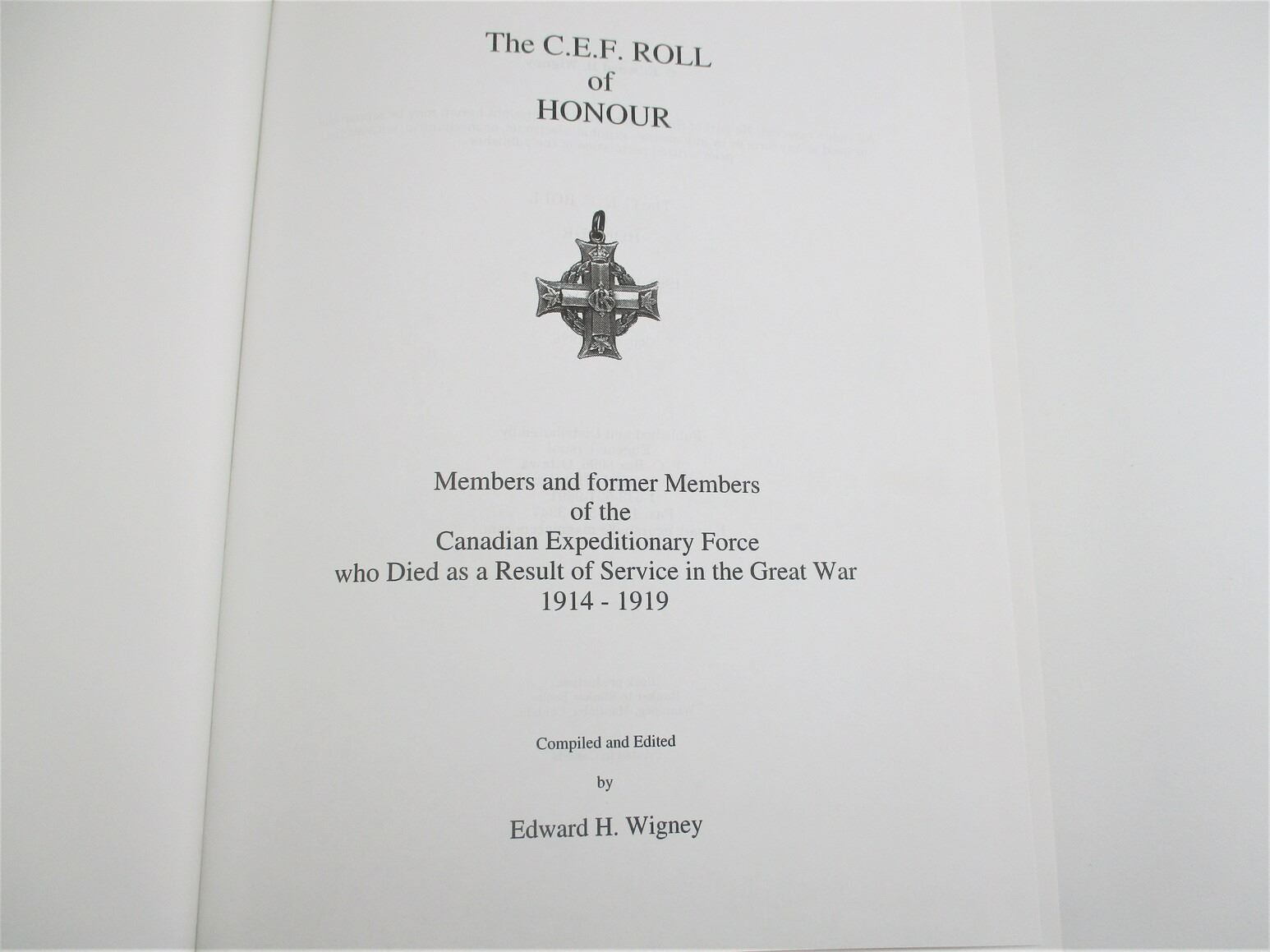 WORLD WAR I BOOK LOT, " THE C.E.F. ROLL OF HONOUR" COMPILED BY EDWARD H. WIGNEY, 1996, ISBN 0969885733, EXCELLENT CONDITION, SEE PHOTOS