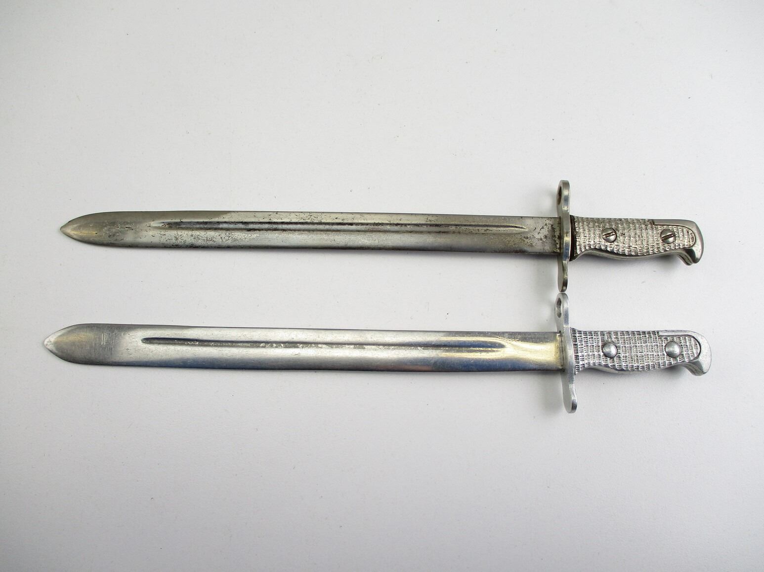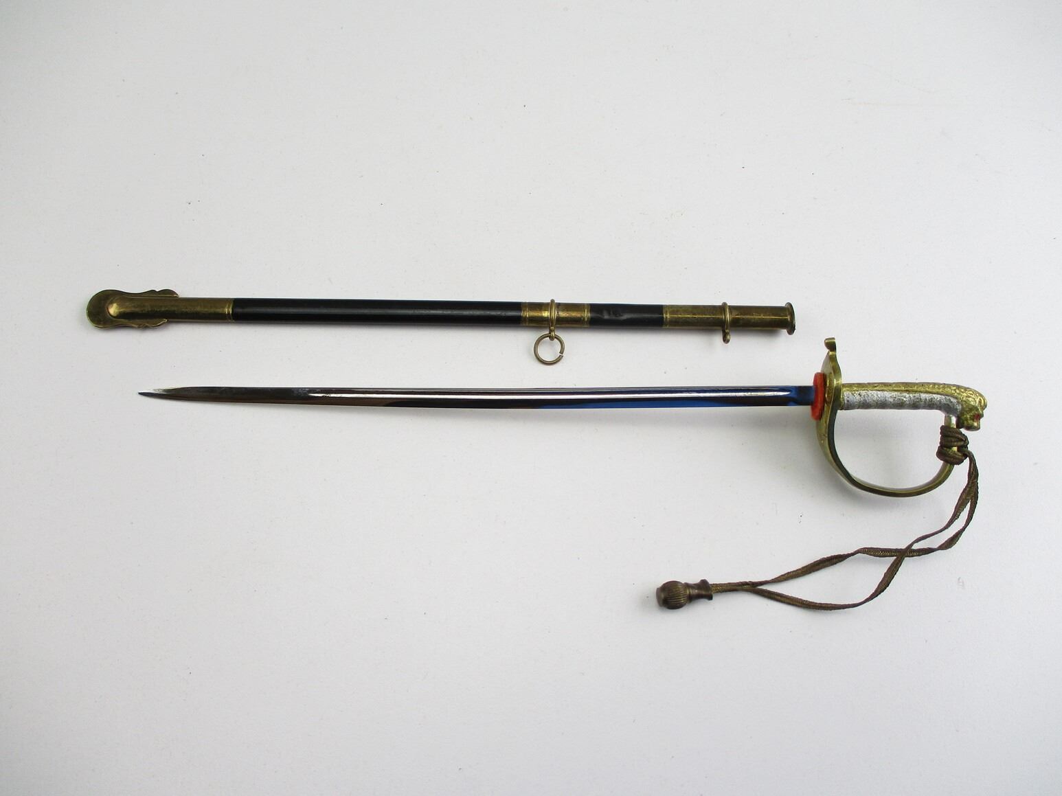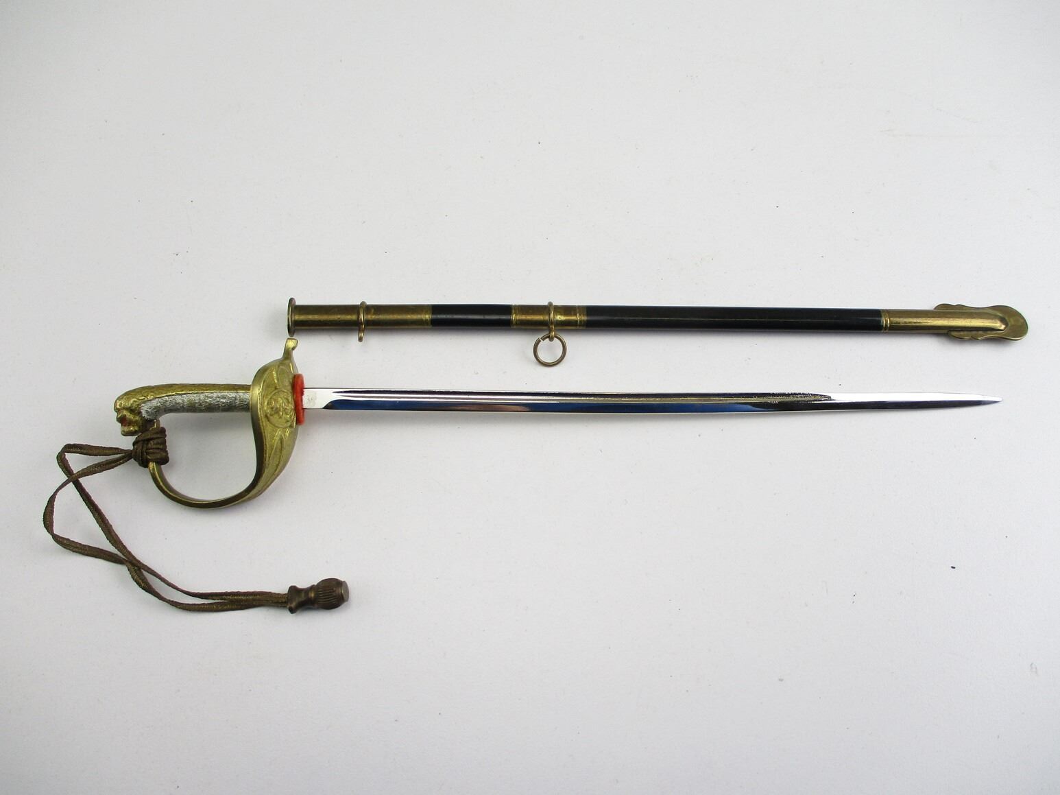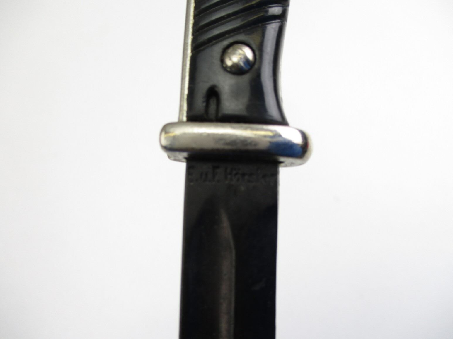 ASSORTED GERMAN MINI-DAGGER / SWORD LOT, LOT INCLUDES; (1) K98 DRESS DAGGER WITH SCABBARD, SCABBARD FAINT / UN-CLEAR MARKINGS, BLADE APPROX. 5 5/8" & OAL APPROX. 9.75", (1) 1884/98 DAGGER, RICASSO MARKED: "4015, N", OTHER-SIDE MARKED: "E.U.F. HORSTER", BLADE APPROX. 4.75" & OAL APPROX. 7 3/8", (1) SWORD, BRASS HILT WITH ANCHOR SYMBOL, LION HEAD HANDLE / POMMEL, PORTAPEE, SCABBARD WITH ONE HANGER, BLADE APPROX. 7 1/8" & OAL APPROX. 8 7/8" & (2) UNKNOWN DAGGERS, METAL GRIP WITH POSSIBLE FEATHER TYPE DESIGN, ONE HAS LOOSE CROSS-PIECE, BOTH BLADES APPROX. 6.5" & OAL APPROX. 8 3/8".
