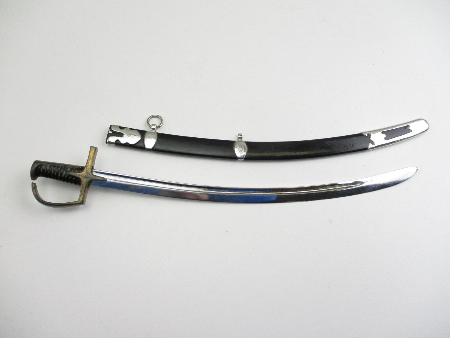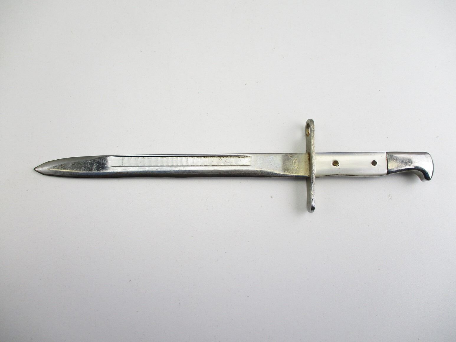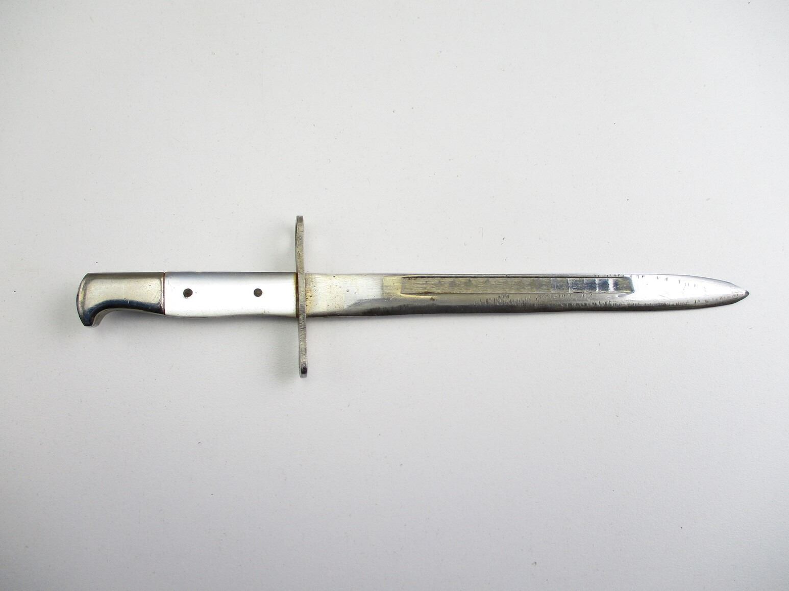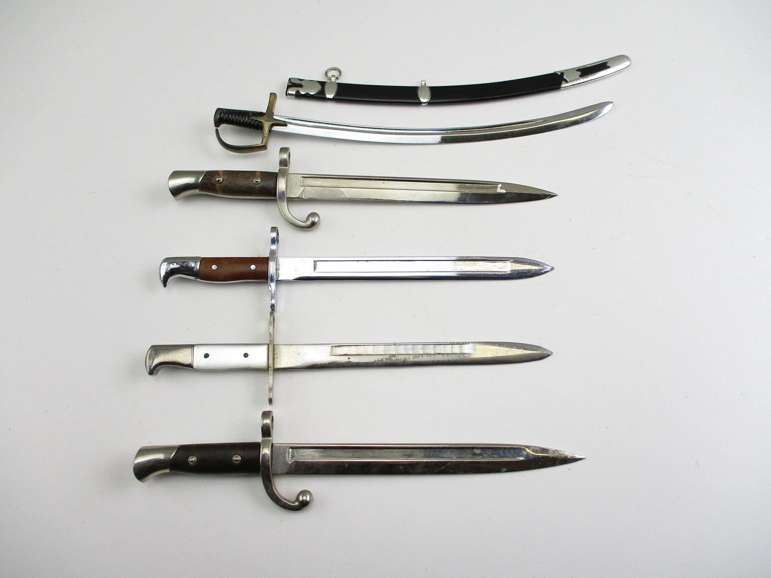 ASSORTED MINI-DAGGER / SWORD LOT, LOT INCLUDES; (2) ARGENTINE M1909 DAGGERS, BOTH BLADES APPROX. 5.75" & OAL APPROX. 8.25", (1) UNKNOWN WOOD GRIP DAGGER, BLADE APPROX. 5 5/8" & OAL APPROX. 8", (1) UNKNOWN CLEAR GRIP DAGGER, BLADE APPROX. 5.5" & OAL APPROX. 7 7/8", (1) SWORD WITH SCABBARD, ONE HANGER, BLADE APPROX. 7.5" & OAL APPROX. 8.75".