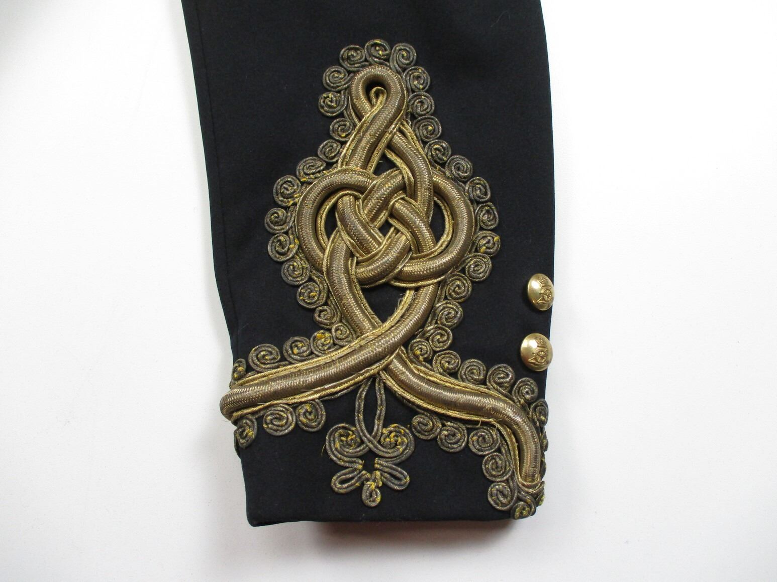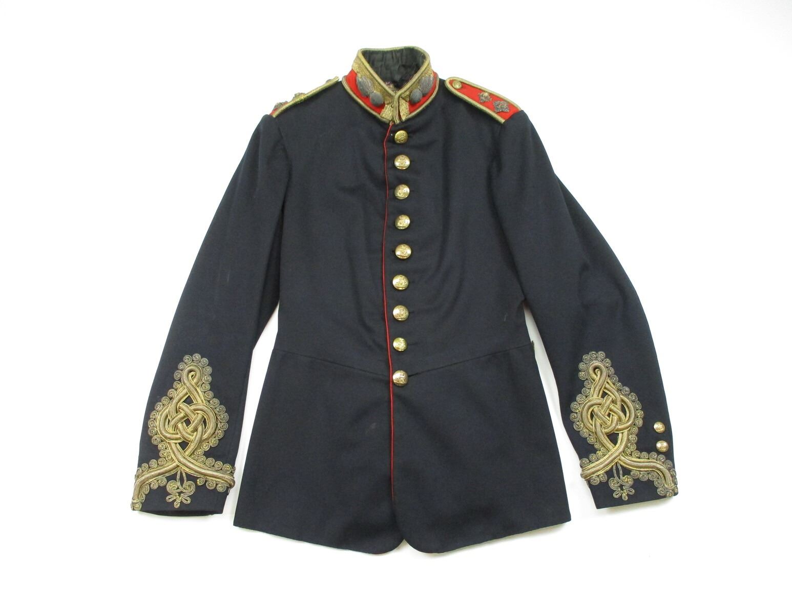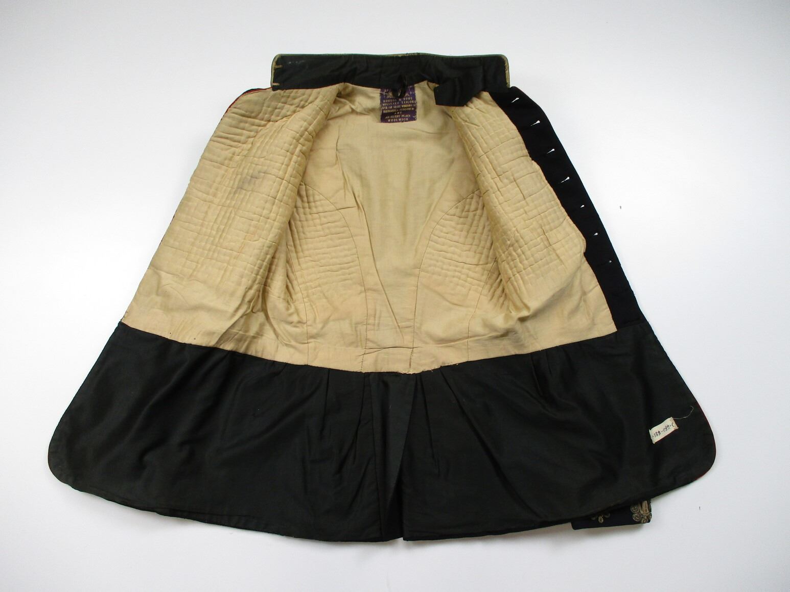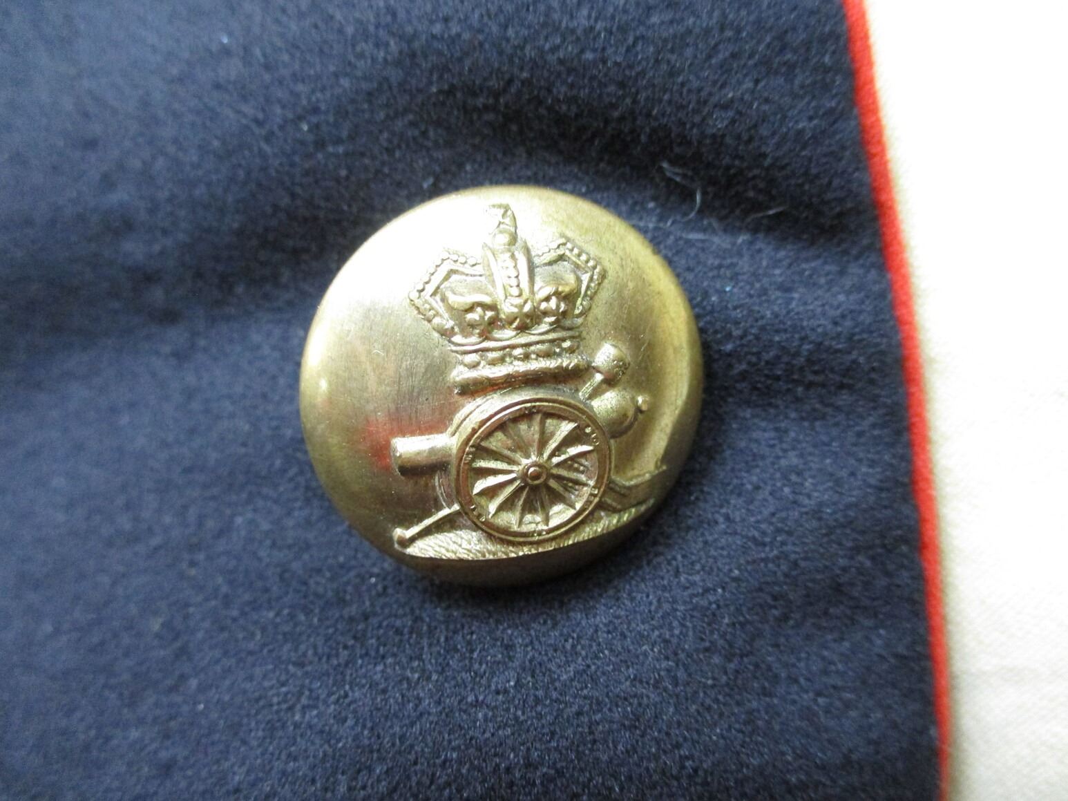 PRE-BOER / BOER WAR CANADIAN MILITARY DRESS TUNIC, (1) BLACK WITH QUILTED LINING, 5TH REGIMENT CANADIAN ARTILLERY, CAPTAIN'S RANKING, CONSIGNOR STATES: "ATTRIBUTED TO CAPTAIN M.G. BLANCHARD", GOLD ROPE TRIM, WIRE SHOULDER / NECK INSIGNIA, MARKED: "HOBSON & SONS MILITARY TAILORS, 37 & 38 LITTLE WINDMILL S?, HAYMARKET LONDON W AND ARTILLERY PLACE, WOOLWICH", SHOULDER WIDTH APPROX 15". SEE PHOTOS.
