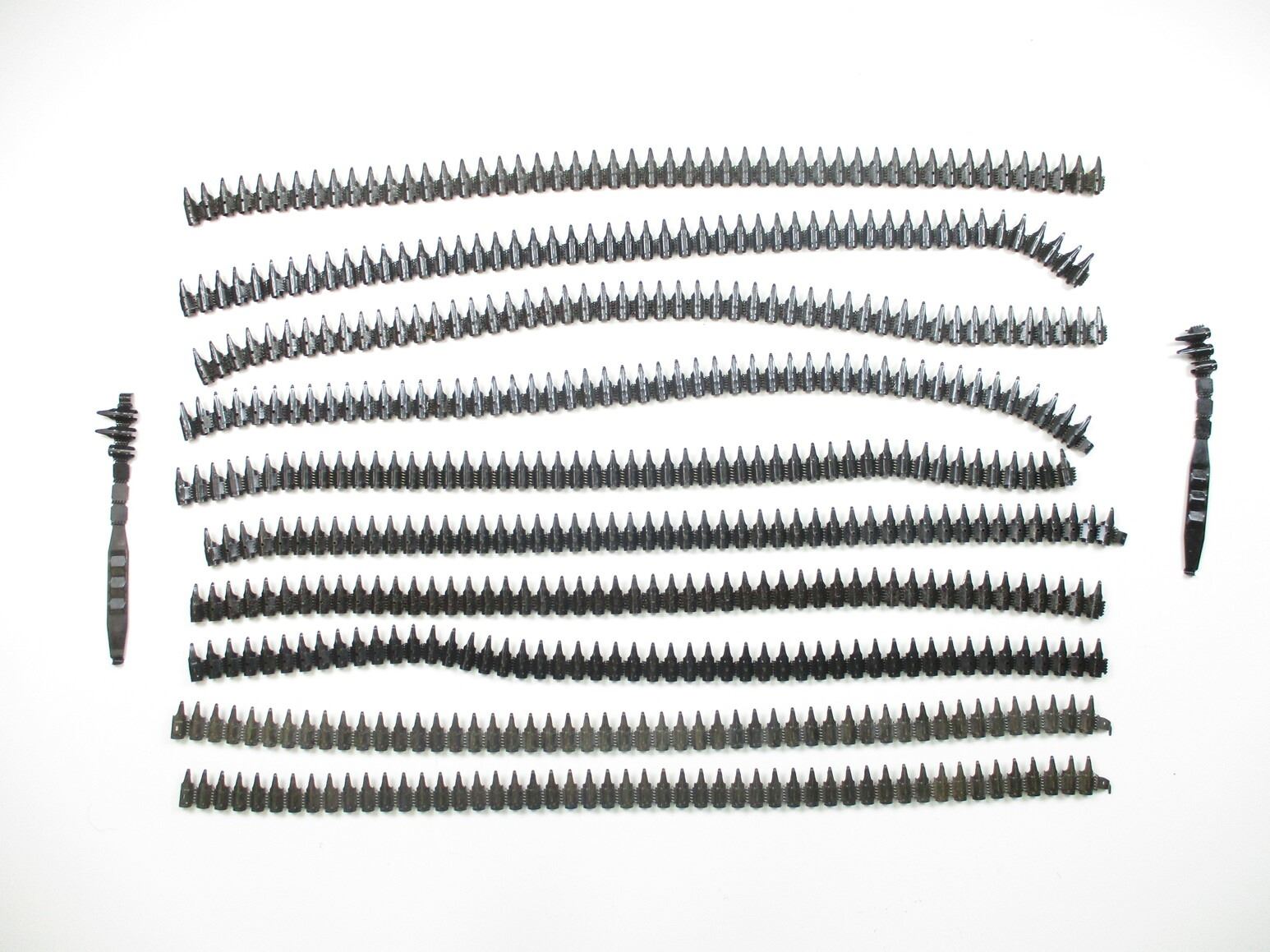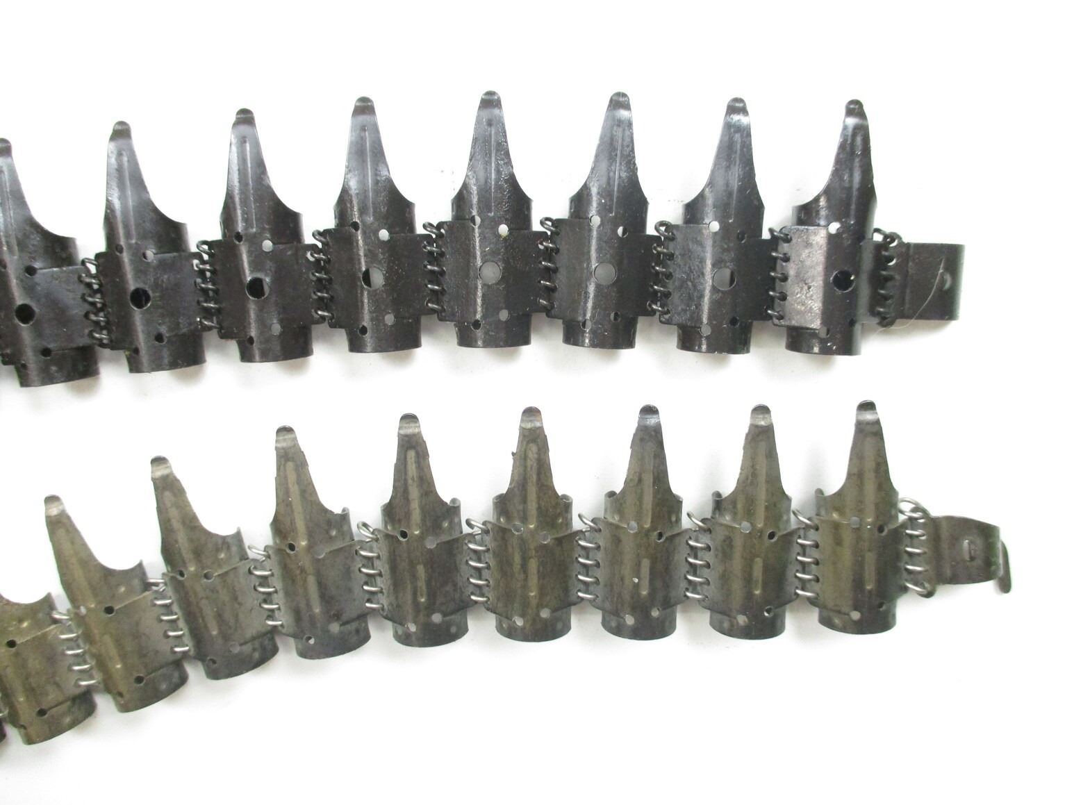 POST-WAR YUGOSLAVIAN MG 34/42 LINK BELT LOT, LOT INCLUDES; (5) 50-RND LINK BELTS, ONE MARKED: "T95" ON STARTING LINK, NO OTHER VISIBLE MARKINGS & (2) STARTER TABS WITH MAKER'S PROOFS. SEE PHOTOS.
