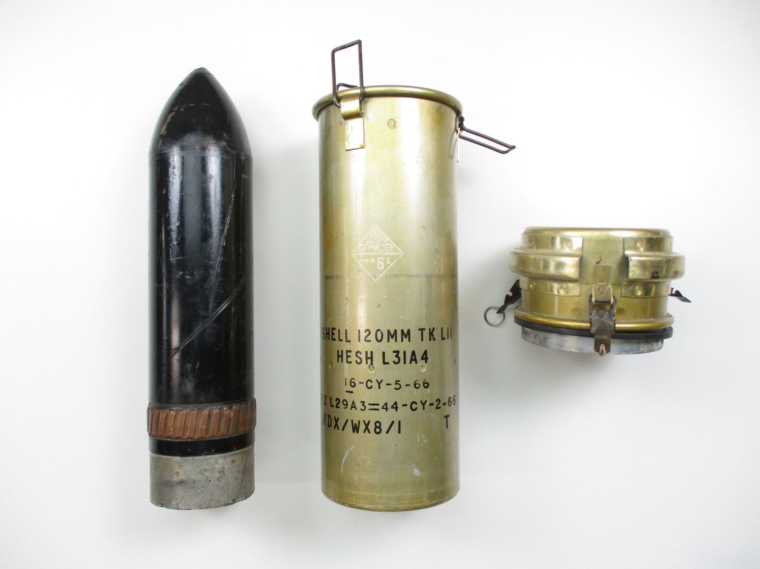 Lot 28906 BRITISH 120MM TK LII SHELL INERT AND CANNISTER LOT