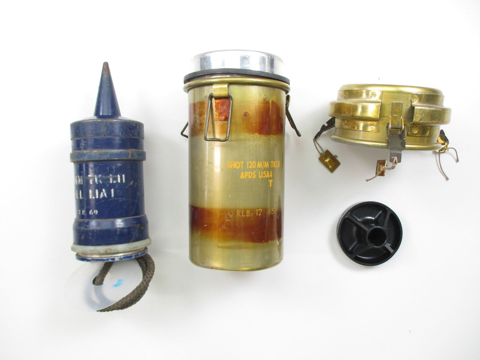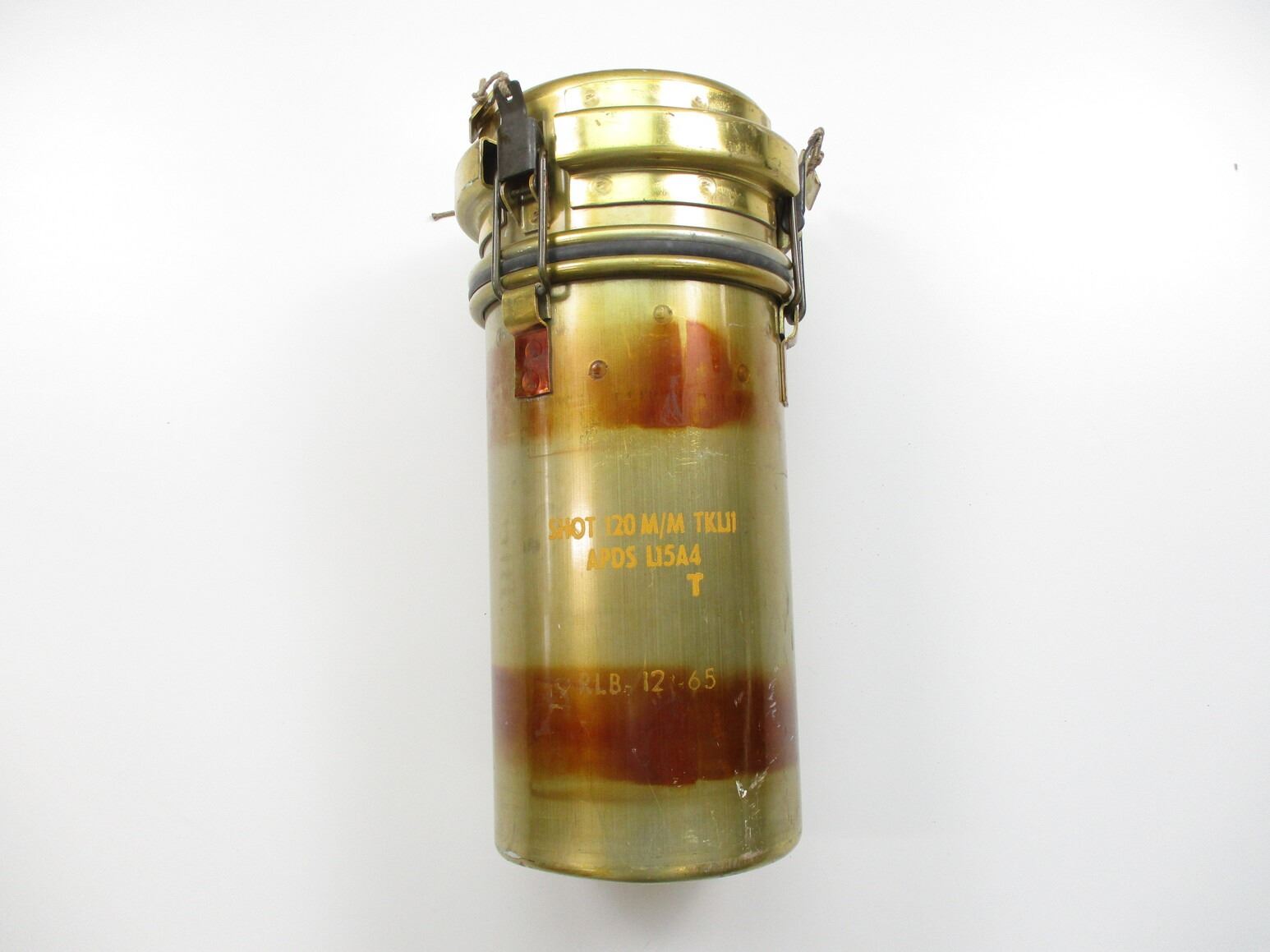 Lot 28907 BRITISH 120MM TK LII DRILL SHELL INERT AND CANNISTER LOT