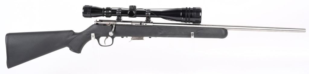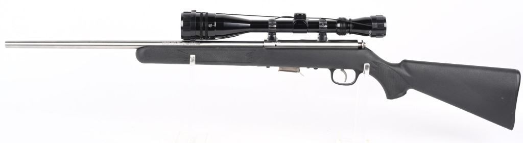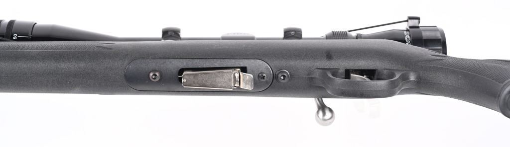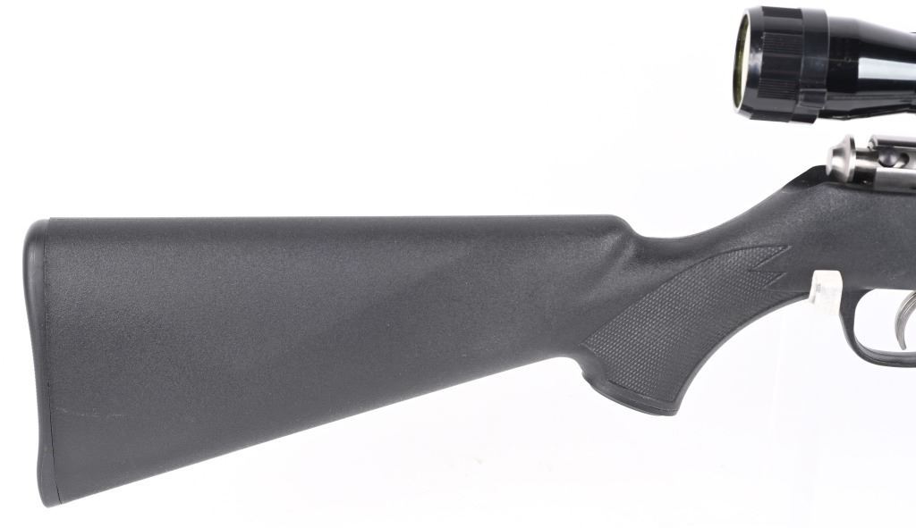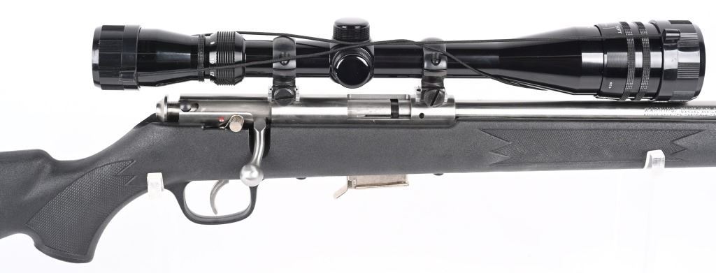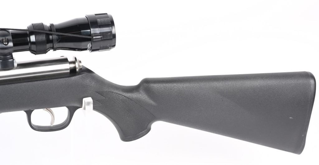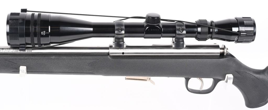 SERIAL NUMBER: 0414905. BARREL: 21". CALIBER: .17 HMR. MANUFACTURED: 2000s. Standard features. Stainless steel finish and black synthetic stock. Factory five round magazine. Includes attached Tasco 6-24X40 scope. CONDITION: Metal is excellent overall, as is the stock. Bore is clean with crisp rifling. Mechanically fine. Scope is clear. MODERN