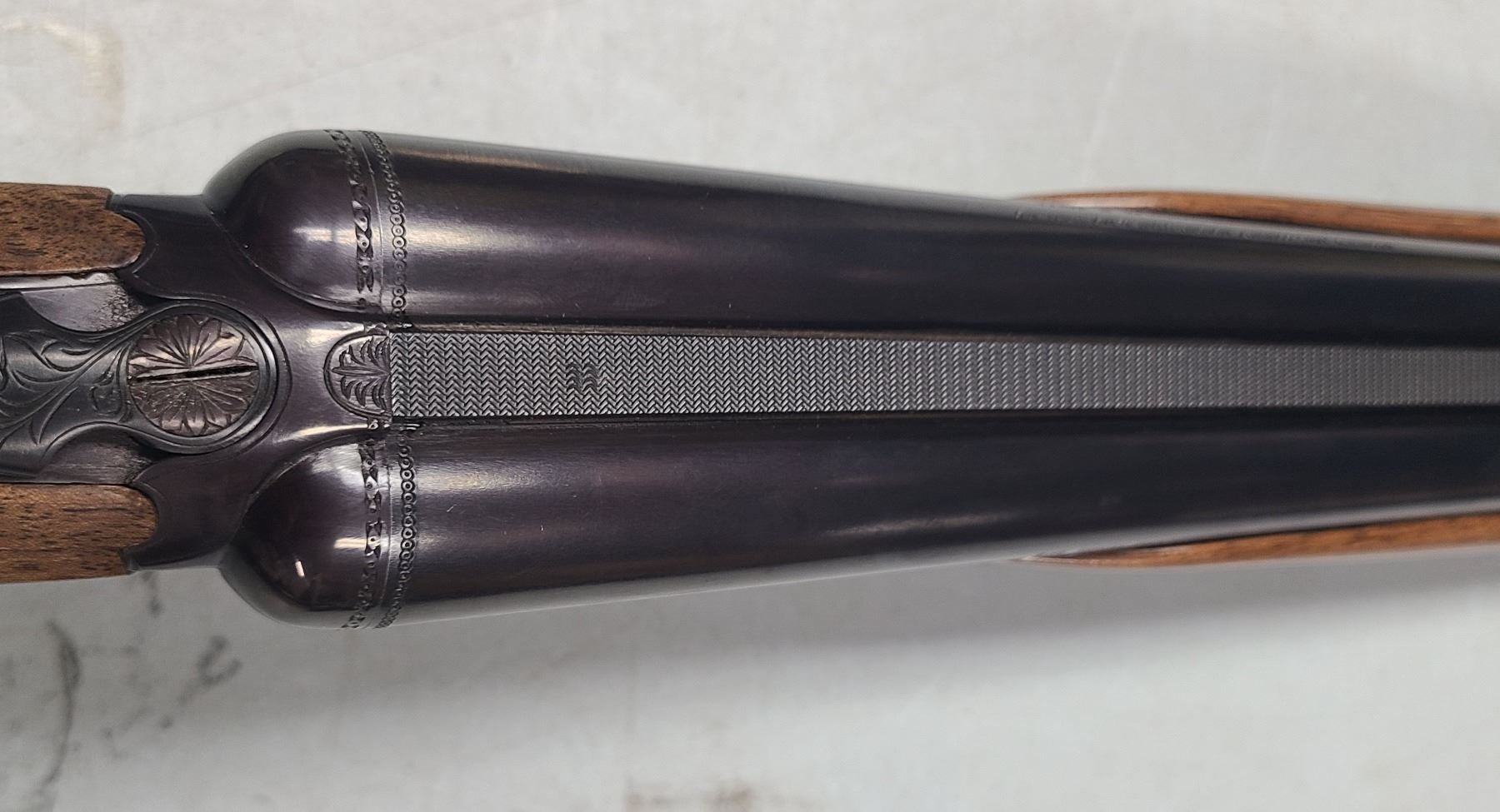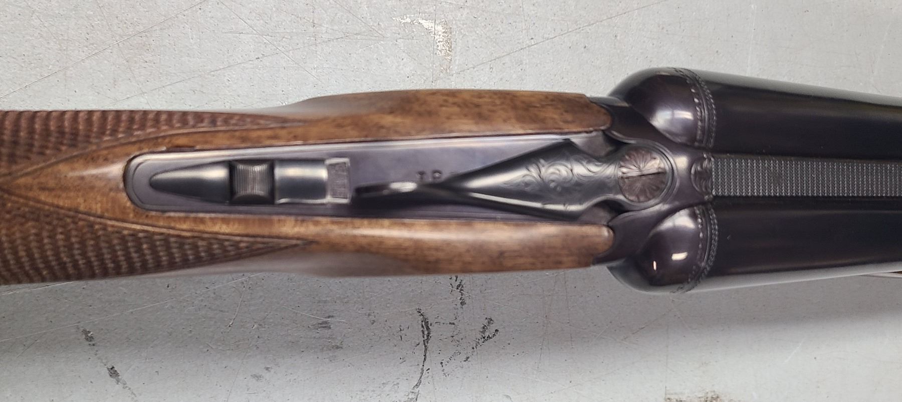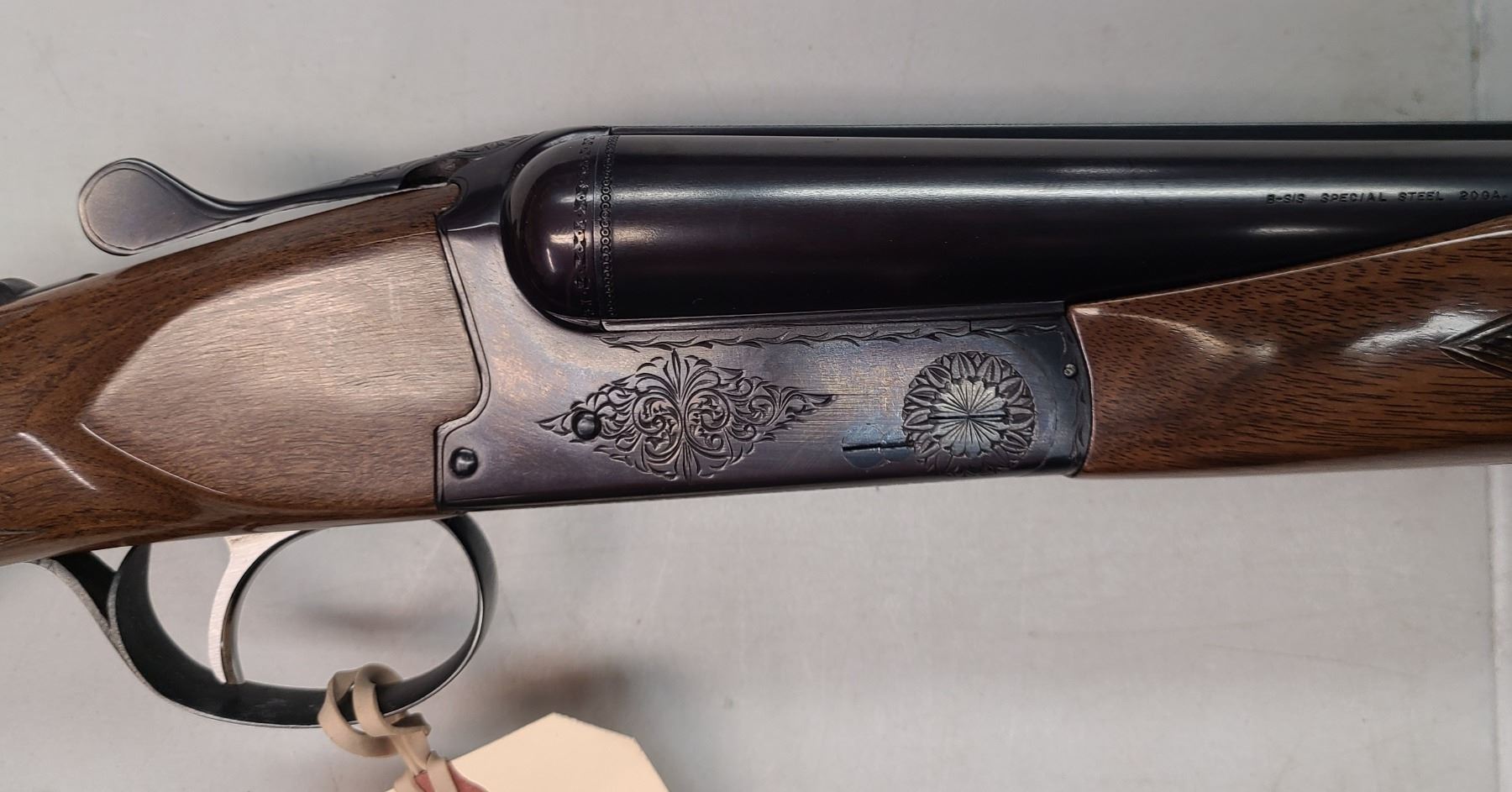 This is a unique 20-gauge side-by-side. Etched on the side of the left barrel is