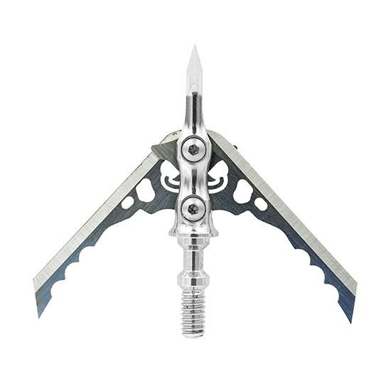 The revolutionary Hypodermic Crossbow NC utilizes cutting-edge finger-like tabs on the blades' Slip Cam pivot point to "anchor" them in place while in the closed position, completely eliminating the need for a Shock Collar, dental band or O-ring, while still providing reliable blade retention. Upon impact, the blades instantly deploy to a 2-inch cutting diameter, administering the gaping wounds that bowhunters have come to expect from the field-proven Rage Hypodermic series. The new 125-grain Hypodermic Crossbow NC features the lethal Hypodermic hybrid tip with an even narrower profile and needle-like ferrule. In flight, that streamlined design makes for superior field-tip accuracy. The two .035" thick blades deploy on impact, sliding into a swept-back blade angle while the monstrous 2" cutting diameter delivers a wide entry hole for gruesome blood trails and brief tracking jobs.