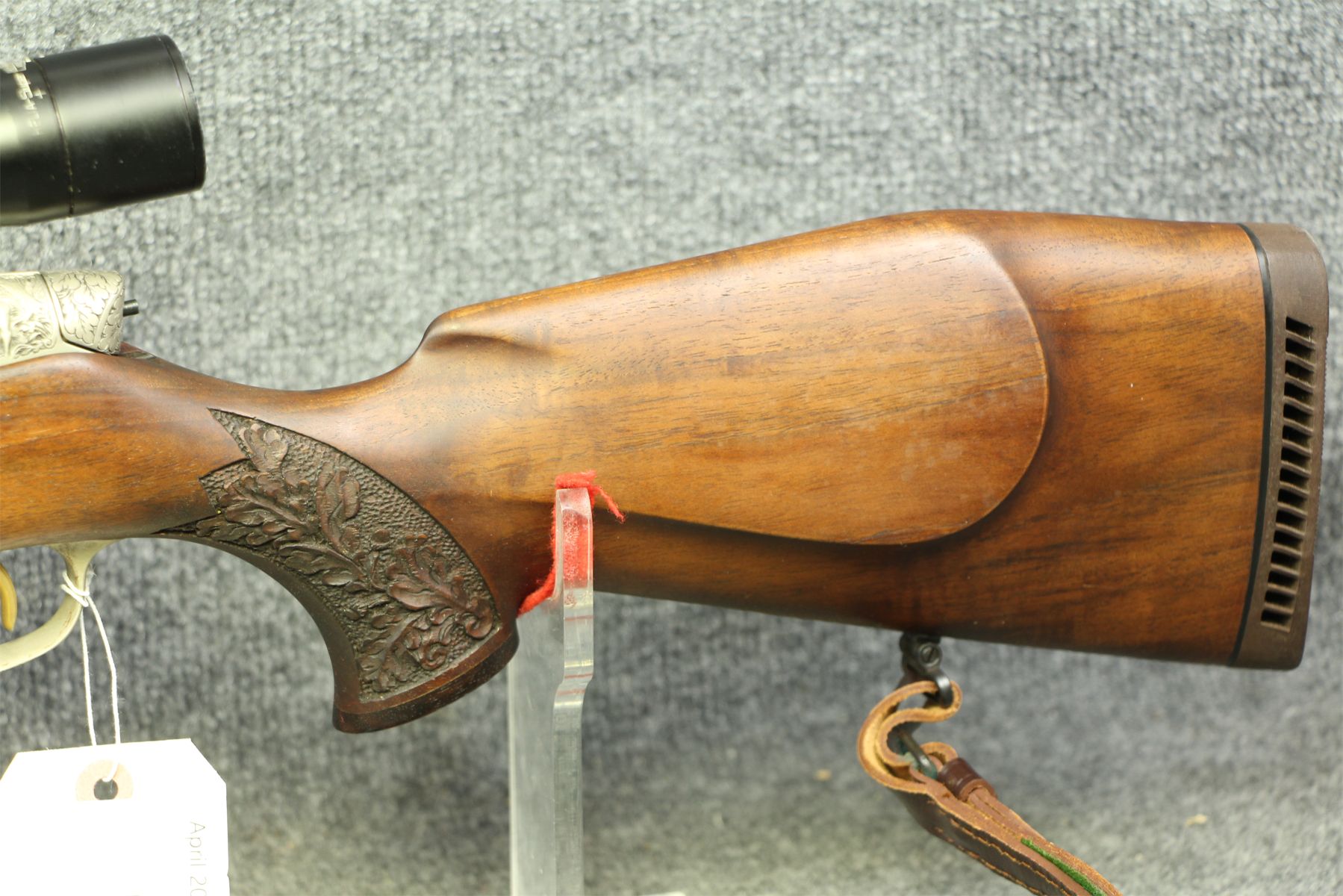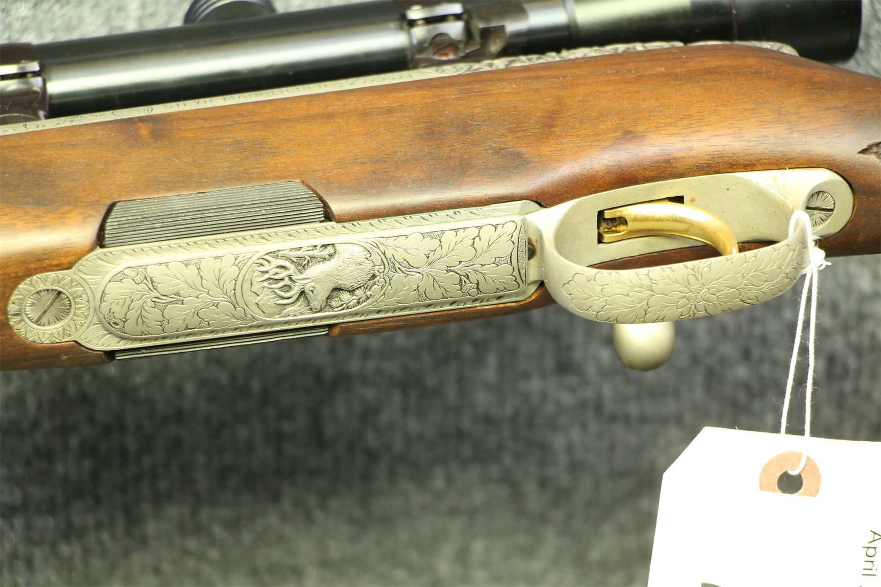 In nearly out of the box condition. Two insignificant shallow gouges under the fore-end and at the toe of the buttstock. Rosewood fore-end tip. Deep engraving on the nickel receiver, mag plate and stock. Comes with a Kahles/Wein 4x scope. Duplex cross-hairs. One of the most beautiful guns we have ever had here.