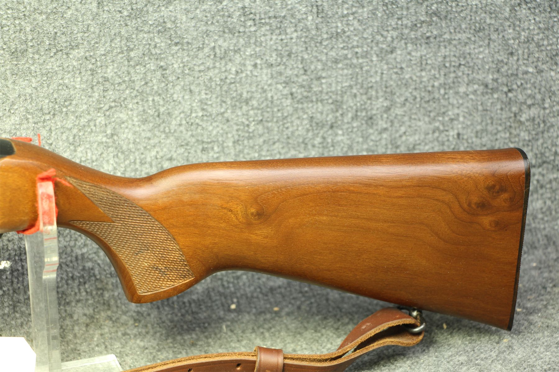 *NEW ENTRY* Has a couple of the tiniest dings in the stock. Otherwise, in out of the box condition. Dark walnut stock, cut checkering, leather sling, 2 mags.