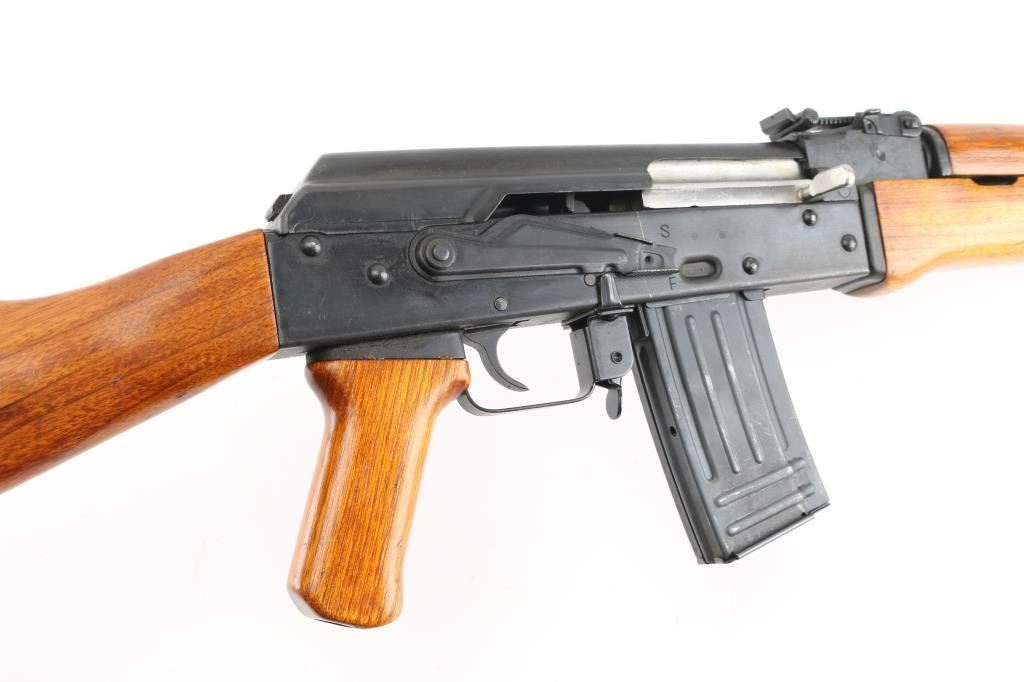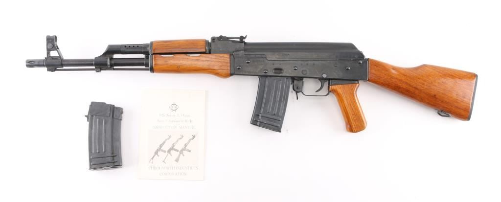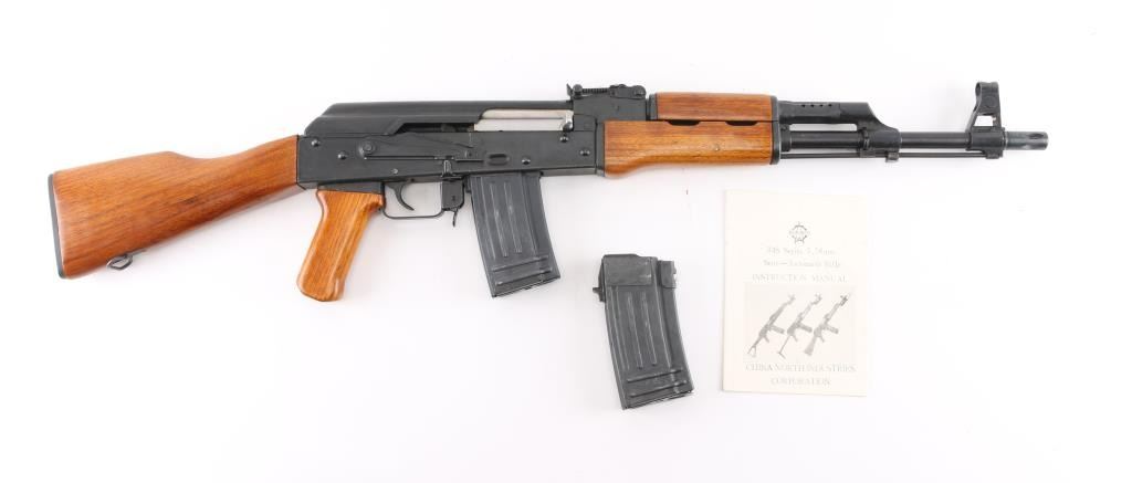 Pre-Ban Chinese semiautomatic rifle imported by CSI, LA, CA. "Triangle - 66" marked. Based on AK-47/AKM type rifle. Features blued finish, smooth wood furniture, 16" threaded barrel, bird cage flash hider, bayonet lug, cleaning rod, protected post adjustable front sight, tangent rear sight, manual safety, cleaning kit in butt trap. Bore is excellent condition, hard chrome lined. Retains 95% blue with handling marks. Wood is excellent condition. Observed numbers match. Includes (2) 20 rd magazines. Condition is NRA Excellent *** Modern Firearm ***