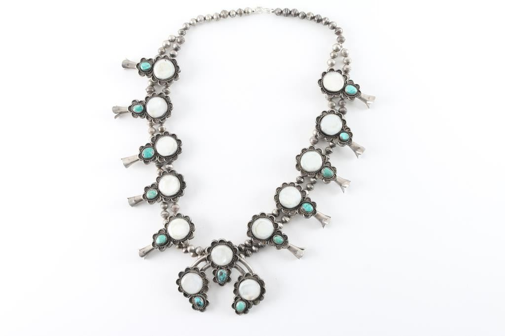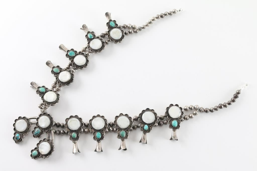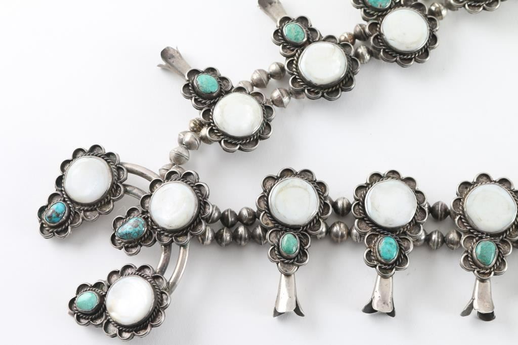set in sterling accented with Mother of pearl and turquoise unsigned